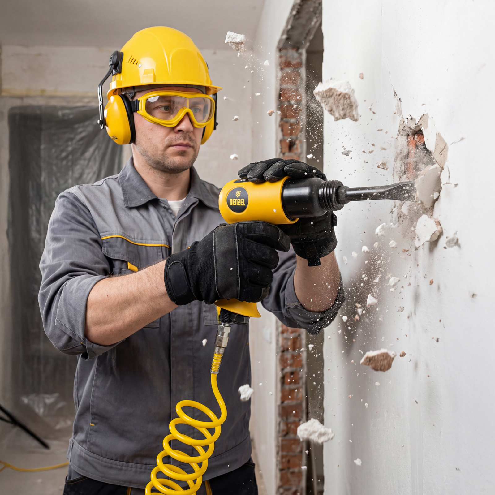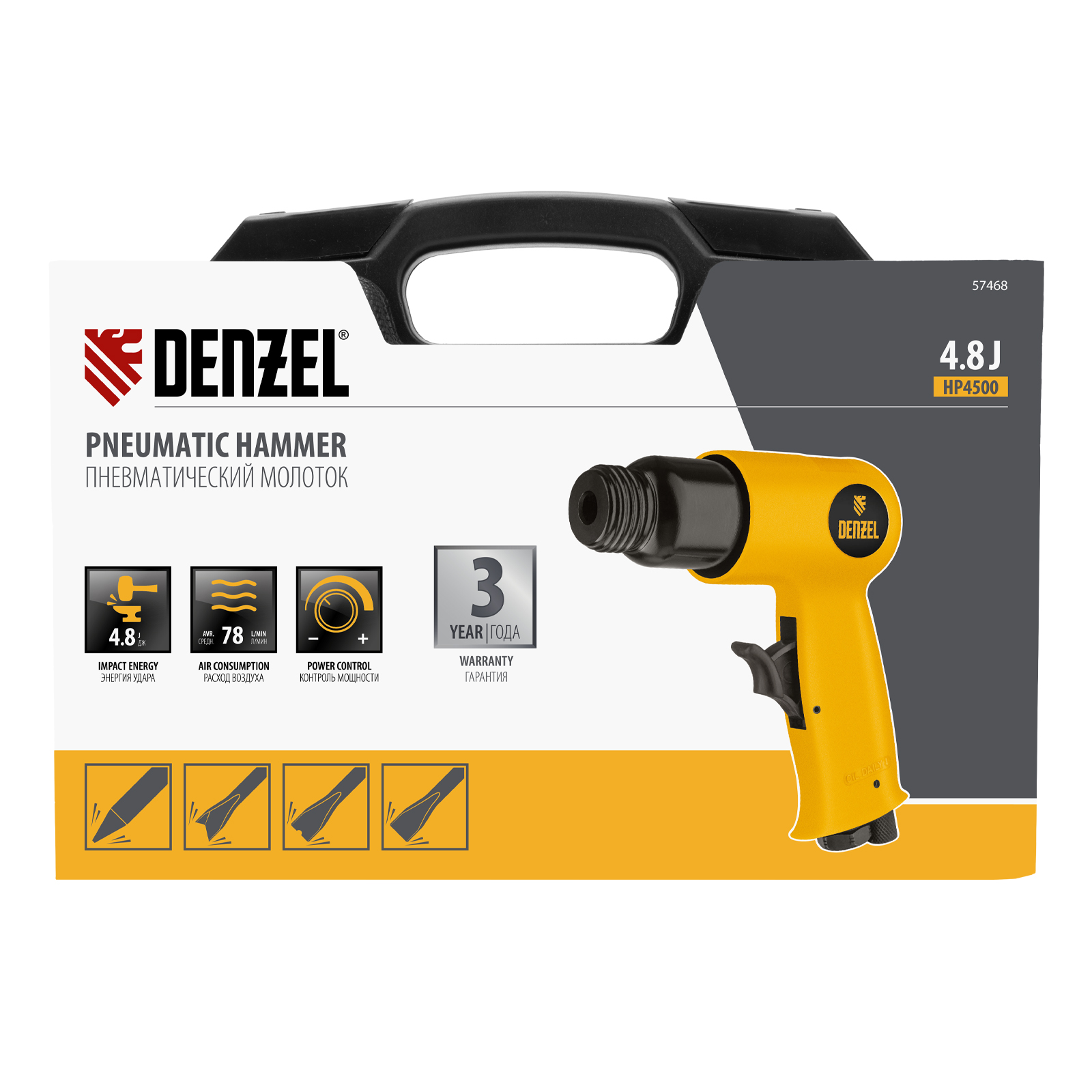 Пневматический молоток НР4500 + набор насадок, 113 л/мин, 4500 уд/мин Denzel в Екатеринбурге