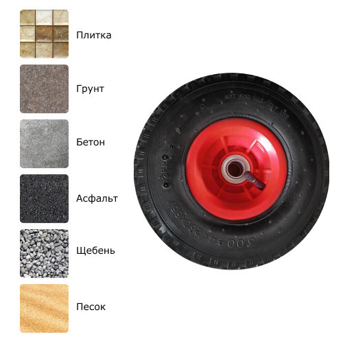 Грузоподъемность данного пневматического колеса составляет 140 кг, диаметр — 260 мм. Модель отличается высокой проходимостью, может использоваться на рыхлых неровных поверхностях (песок, щебень и т. п.), подходит для строительных и садовых тачек.