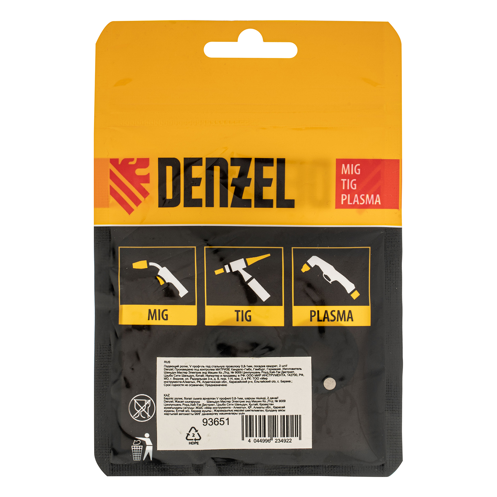 Подающий ролик Denzel 93651 с V-профилем, 2 шт. в упаковке, с посадкой «квадрат», — элемент конструкции сварочного аппарата, предназначенный для протягивания стальной проволоки диаметром 0,8-1 мм. Совместим с моделями 94321, 94322, а также со сварочными полуавтоматами других торговых марок.
