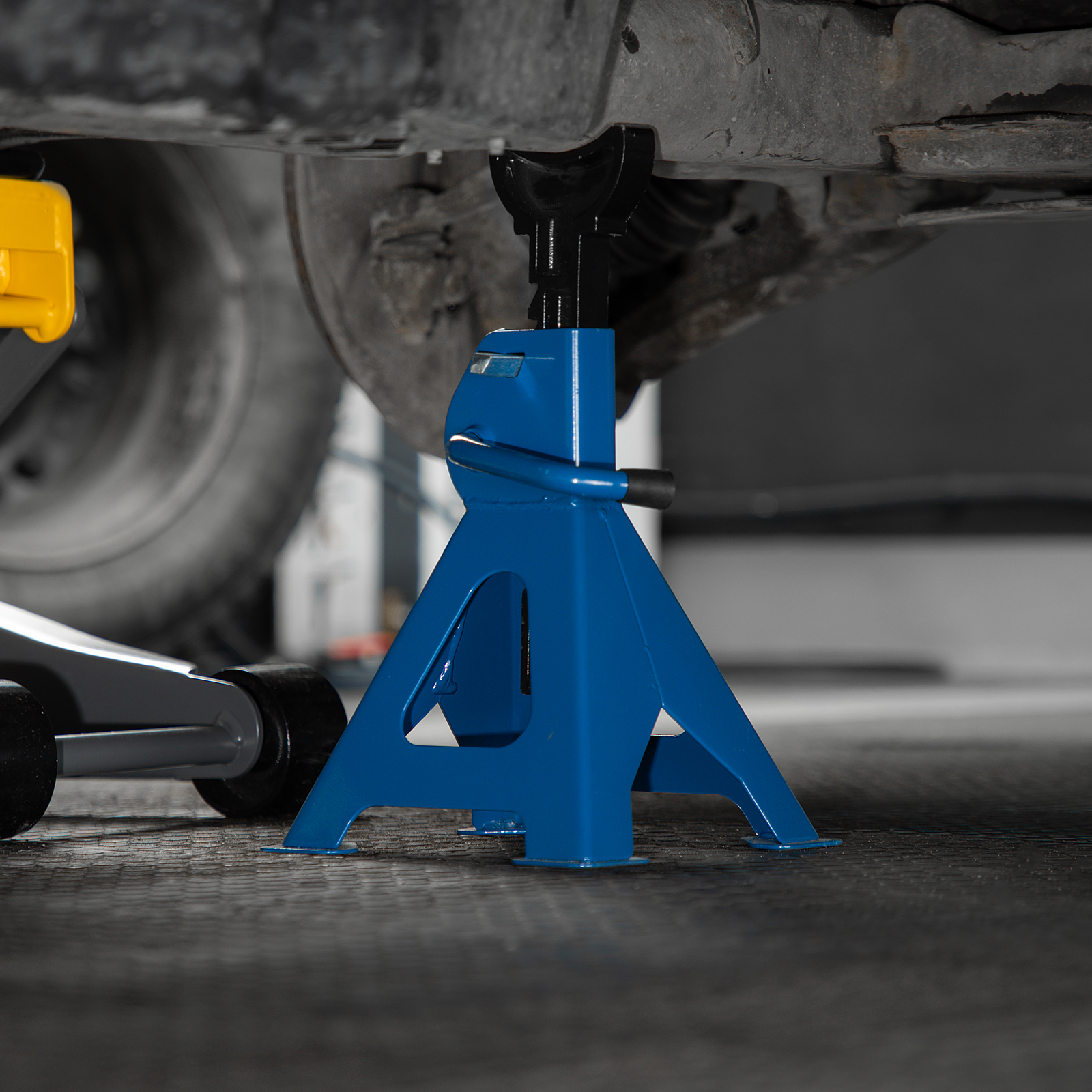 Регулируемые подставки под автомобиль Stels 51627 грузоподъемностью 3 т, с высотой подъема 295-425 мм, 2 шт. в комплекте, используются в качестве дополнительной поддержки во время ремонта автотранспорта. Подставки удерживают автомобиль на необходимой высоте при помощи регулируемых штоков с зубчатым механизмом фиксации. Каждая стойка снабжена страховочным штифтом, что исключает риск случайного опускания штока. Подставки будут полезны для профессионального и самостоятельного авторемонта.