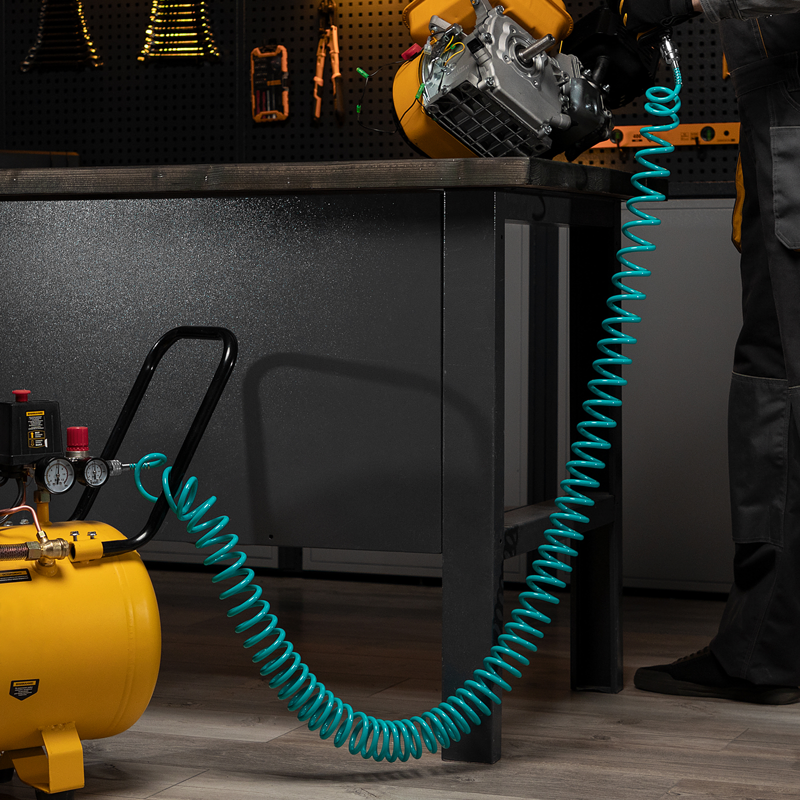 - Длина 15 м — можно работать на значительном удалении от компрессора.