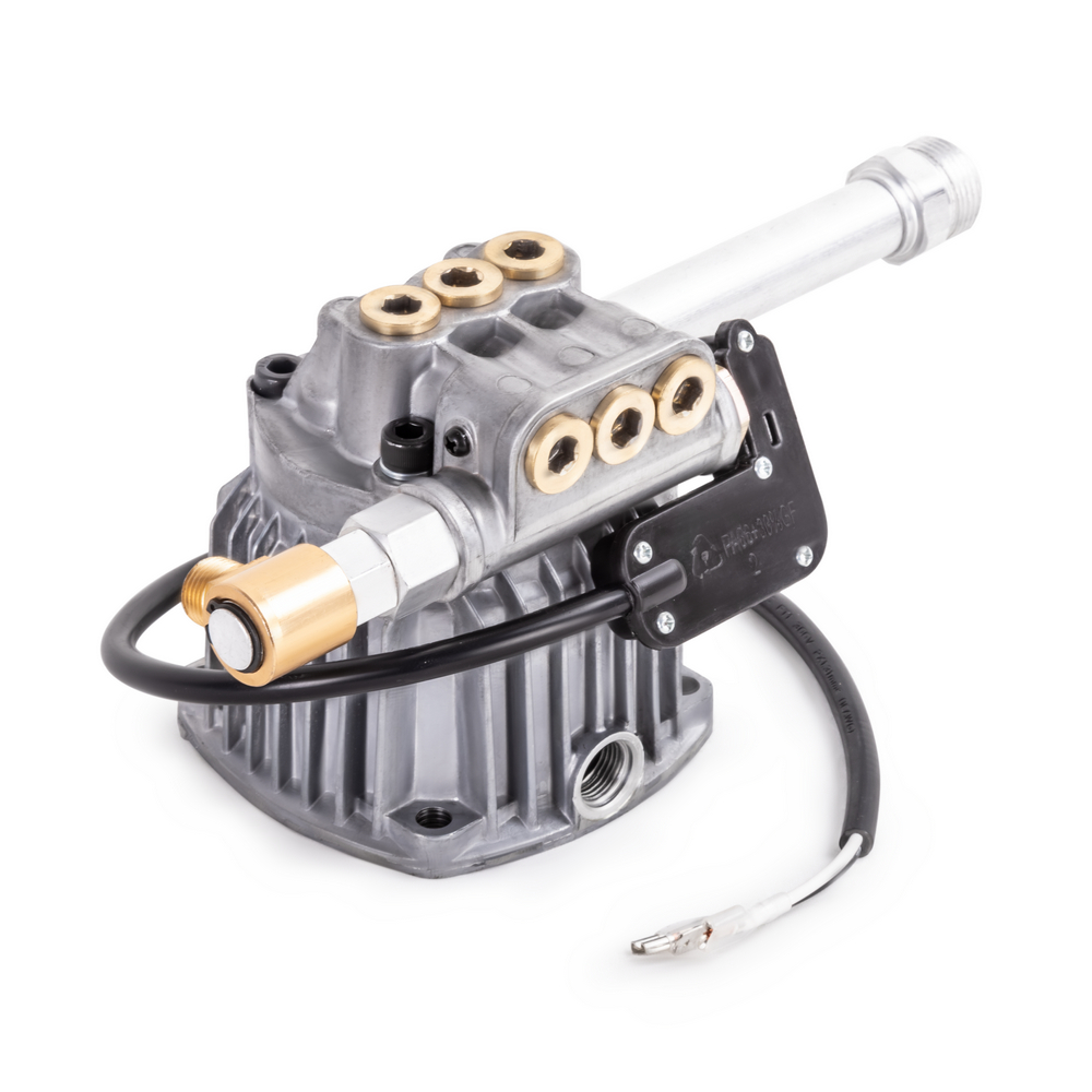 Помпа высокого давления для моек KVAZARRUS K 7 является ключевым рабочим узлом мойки высокого давления и отвечает за нагнетание потока воды под высоким давлением за счет обратно-поступательного движения трех поршней осуществляемого с помощью аксиального приводного механизма косой шайбы. Корпус помпы изготовлен из высококачественного алюминия, а ее клапана и напорный патрубок из латуни, что гарантирует дополнительную надежность и устойчивость к окислению. Помпа отличается высокими основными рабочими параметрами по давлению и производительности. Напорный патрубок из латуни имеет встроенный инжектор для подсоса моющего средства в режиме низкого давления. Также имеется система "AUTOSTOP" которая представляет собой интегрированный манометрический выключатель моментально отключающий электродвигатель при достижении максимального давления в системе после отпускания клавиши на пистолете, благодаря чему исключается его холостой ход, что обеспечивает экономию потребляемой электроэнергии и минимизирует нагрев электродвигателя, а также снижает износ уплотнительных элементов помпы, что способствует увеличению рабочего ресурса аппарата.
