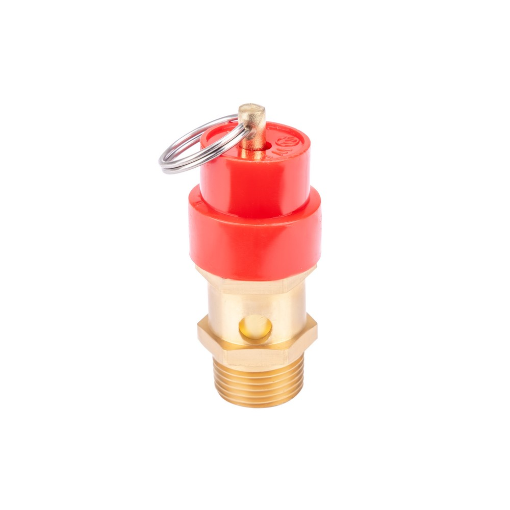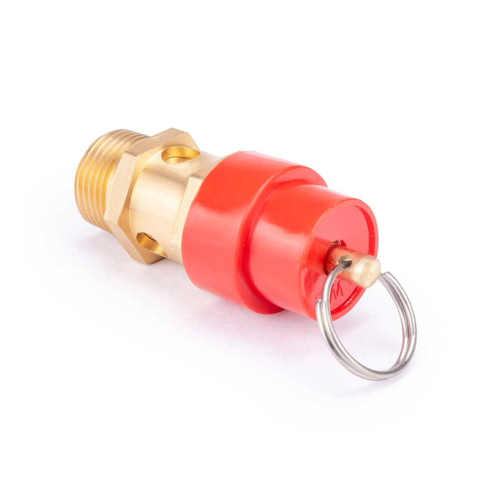 Предохранительный клапан AERO с внешней резьбой 3/8″ предназначен для аварийного сброса сжатого воздуха из ресивера компрессора в случае если давление превысило максимально допустимые значения, например, в случае выхода из строя или неправильной настройки управляющего оборудования.