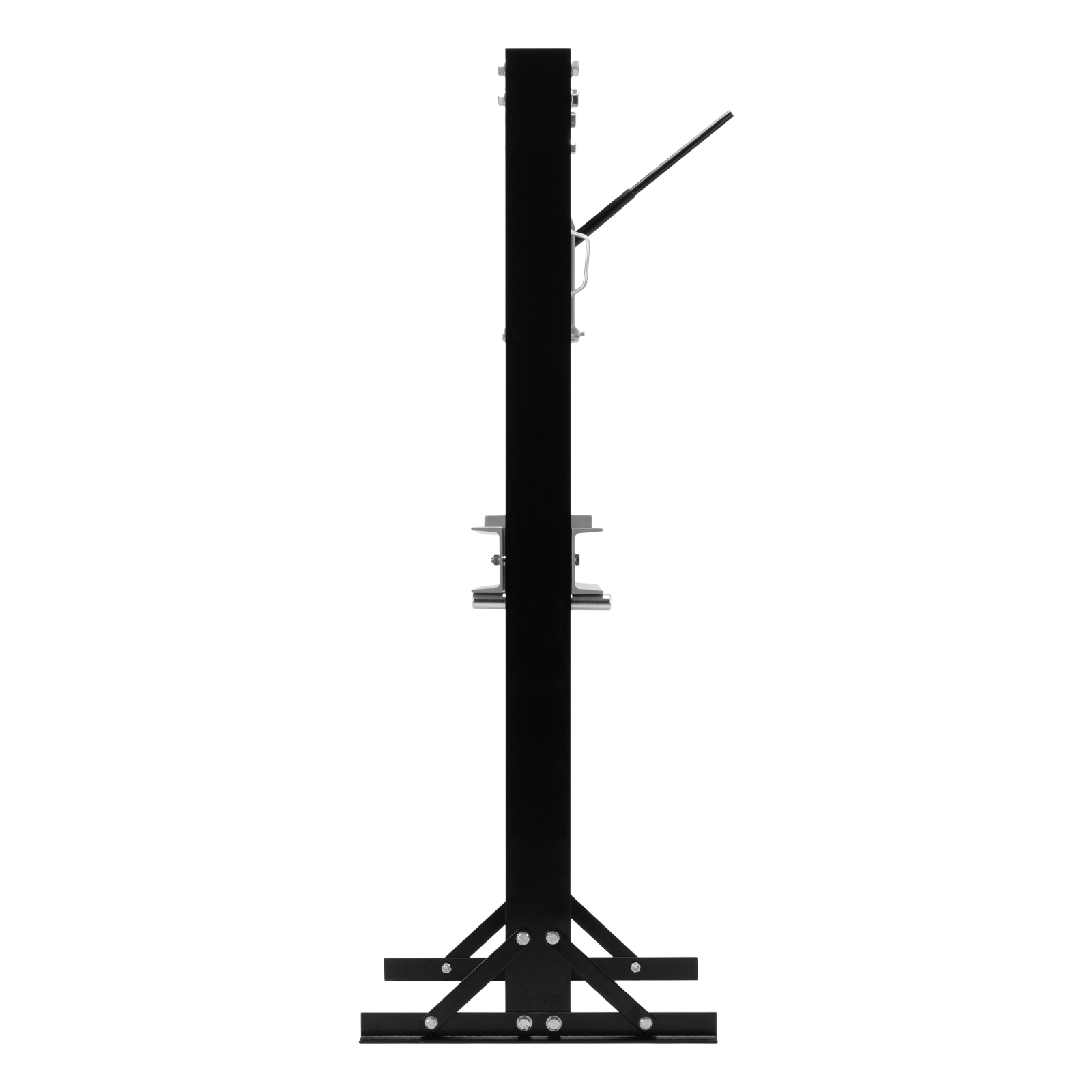 Гидравлический пресс Matrix 523205 размером 640 х 540 х 1500 мм, воздействующий на детали с усилием 20 т, поставляется комплектом из 2 частей. Используется для запрессовки и выпрессовки различных деталей, необходимых для ремонта автомобилей. Изготовлен из толстого прочного металла и имеет простую разборную конструкцию из верхней и нижней балок, стоек, станин и гидравлического бутылочного домкрата. Пресс подойдет для самостоятельного использования в гараже.