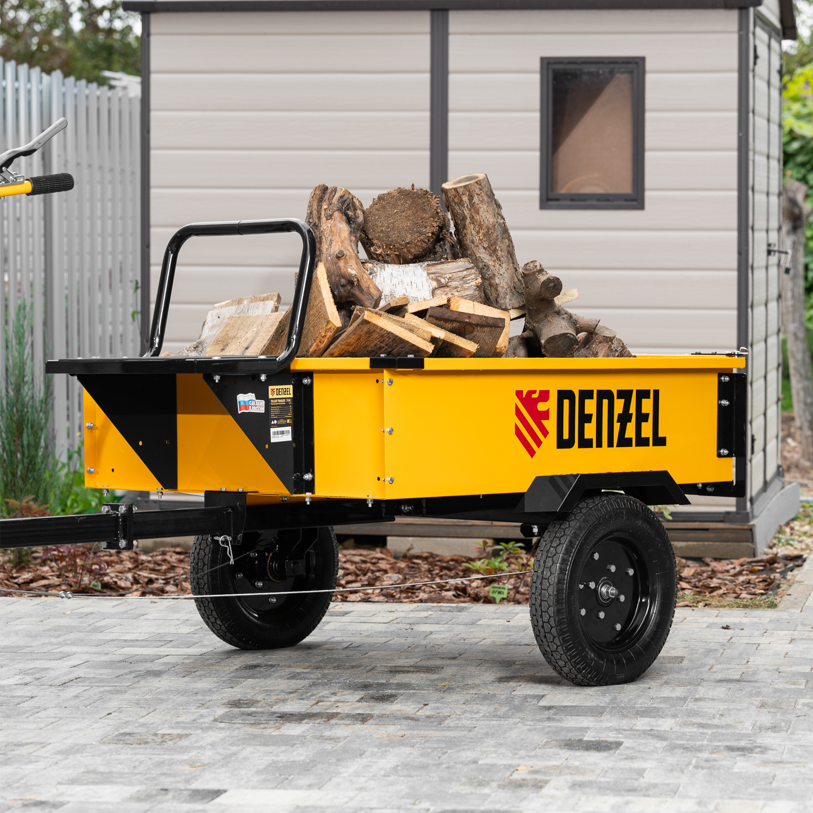 Прицеп для мотоблока TT-500, оцинк., груз. 500 кг, рег. сцепка, колеса 4.00-10, в упаковке Denzel в Екатеринбурге