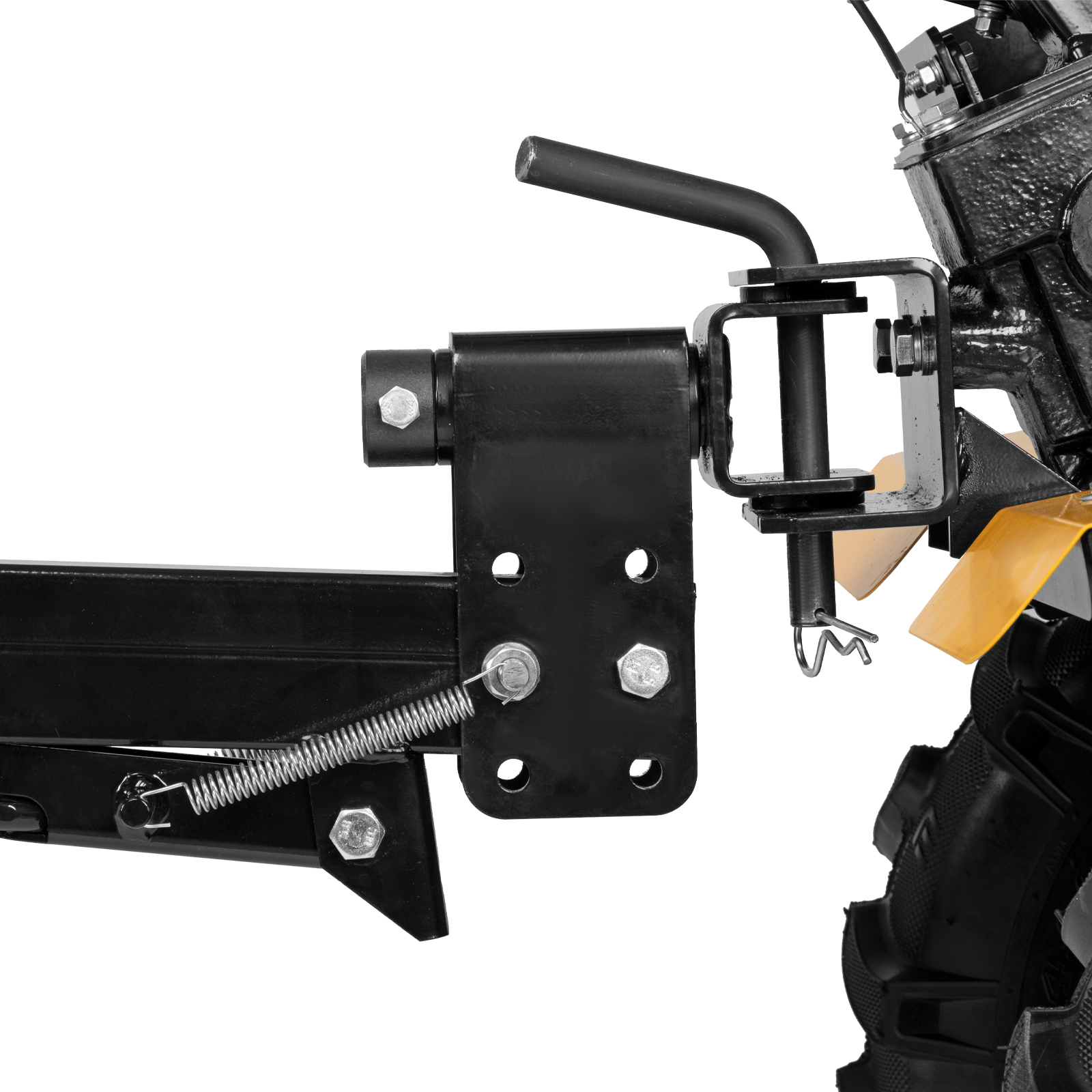 - Продуманная конструкция — пружинная подножка сцепки обеспечивает устойчивость прицепа, не соединенного с мотоблоком.