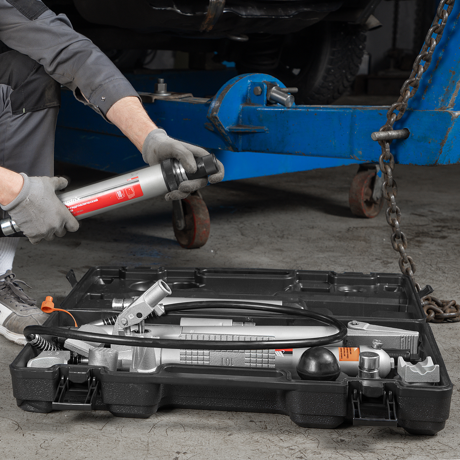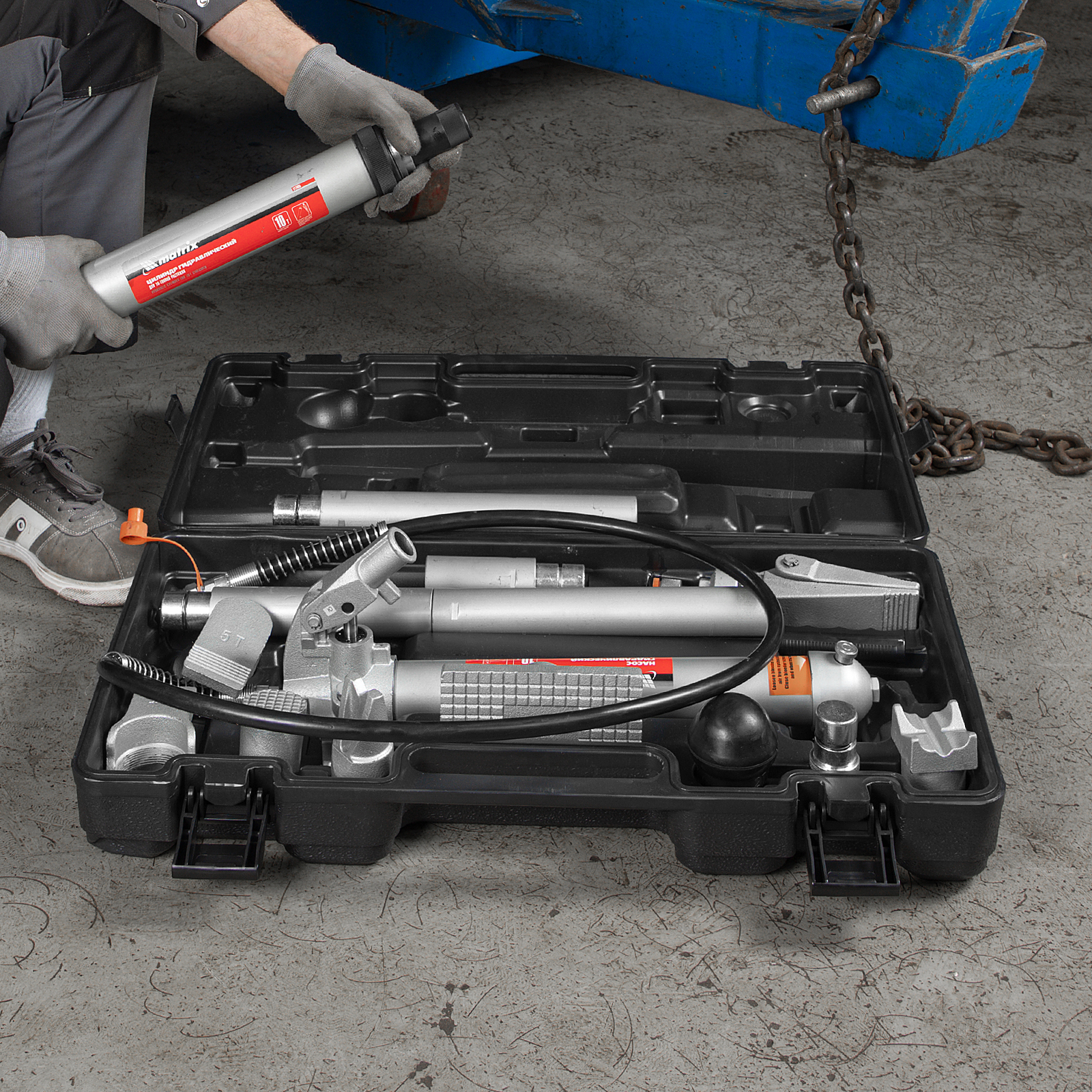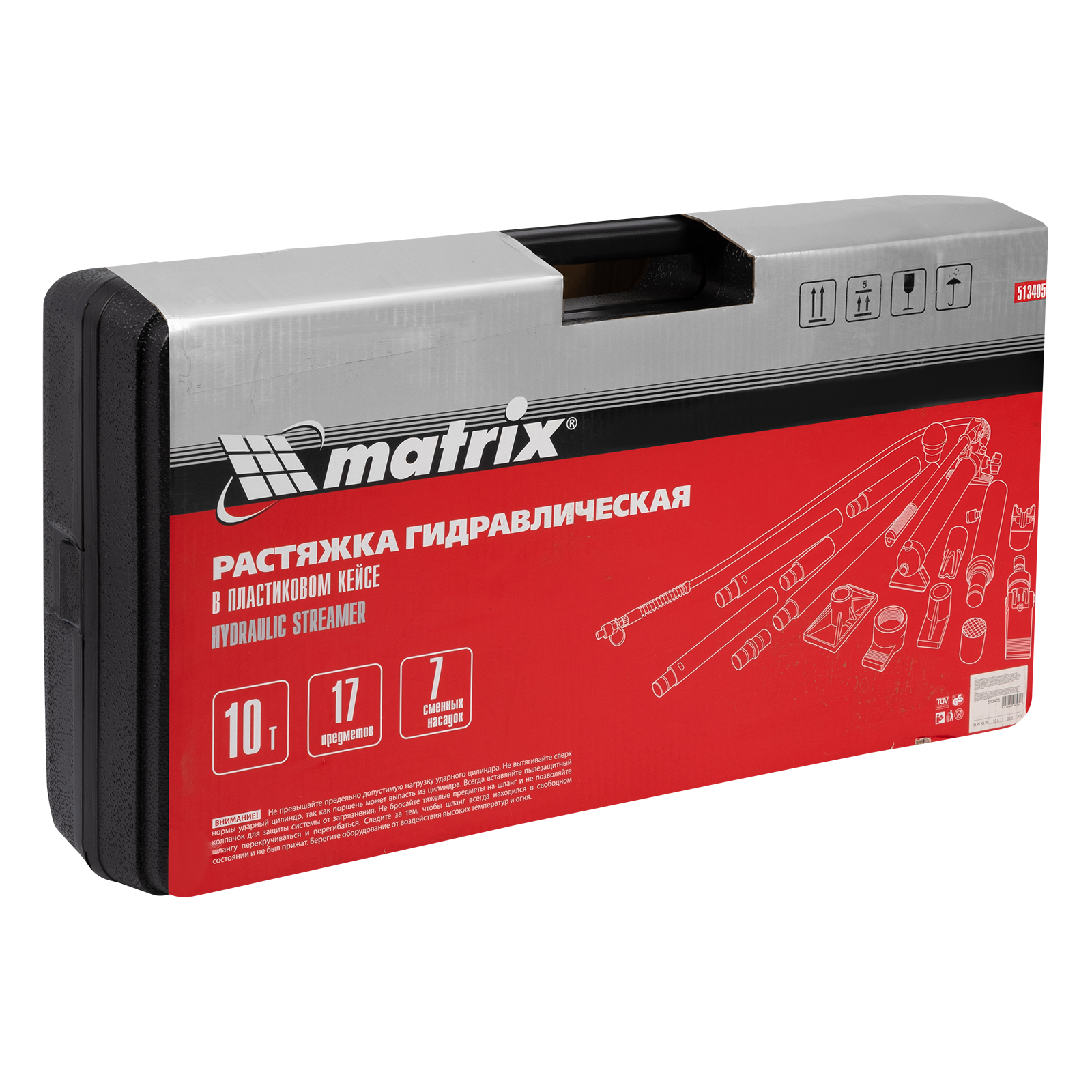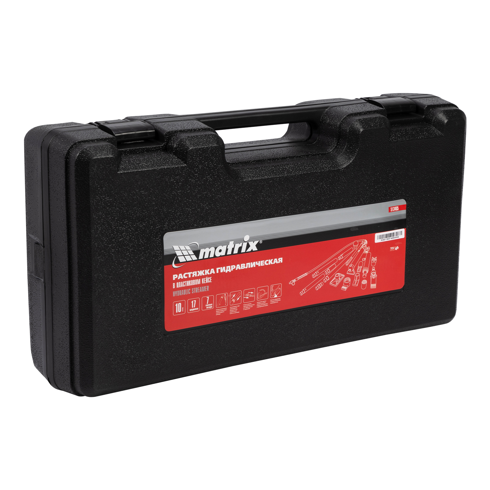 Растяжка гидравлическая, 10 т, набор из 17 предметов, 7 сменных насадок, в пластиковом кейсе Matrix в Екатеринбурге