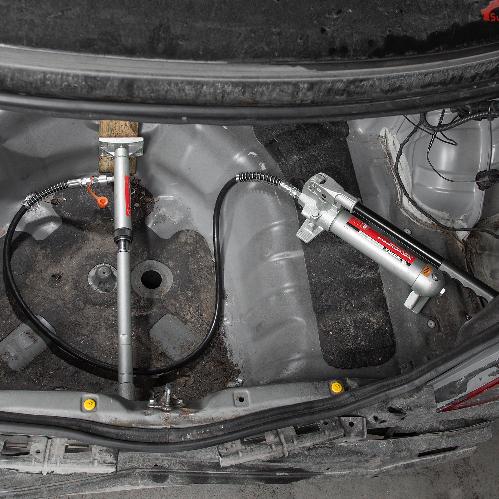 Гидравлическая растяжка Matrix 513405, рассчитанная на усилие до 10 т, входит в набор из 17 предметов — гидронасоса, цилиндра, удлинителя, опорной площадки, адаптера и 7 сменных насадок в пластиковом кейсе. Используется для восстановления геометрии металлических изделий. Можно выбрать оптимальную насадку в зависимости от марки автомобиля, а также области и степени повреждения. Растяжка будет полезна для выполнения кузовных работ и рихтовки металлоконструкций.