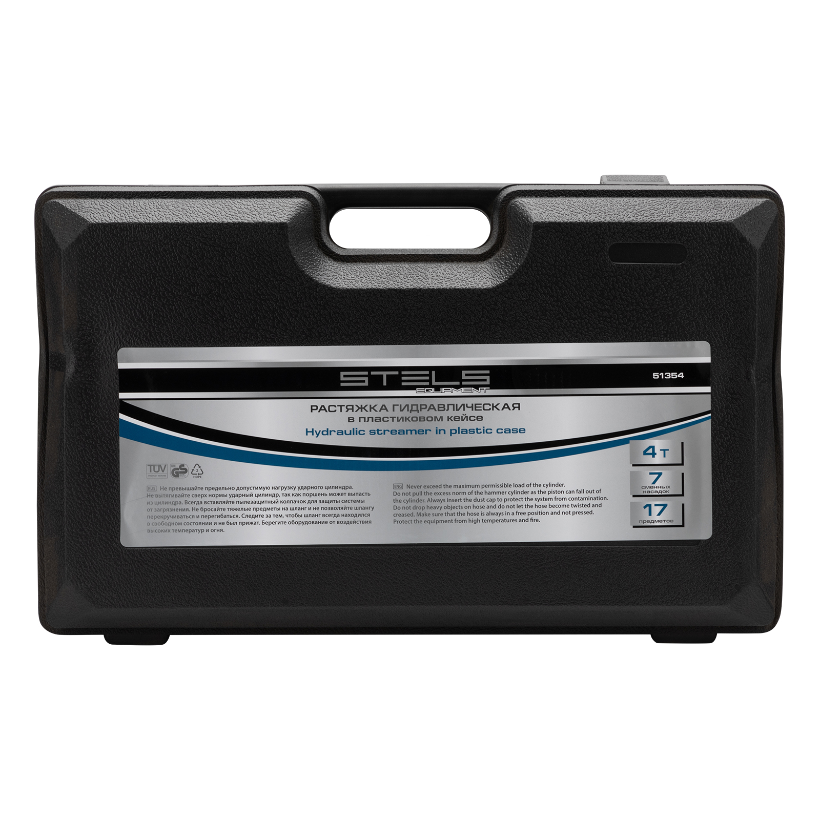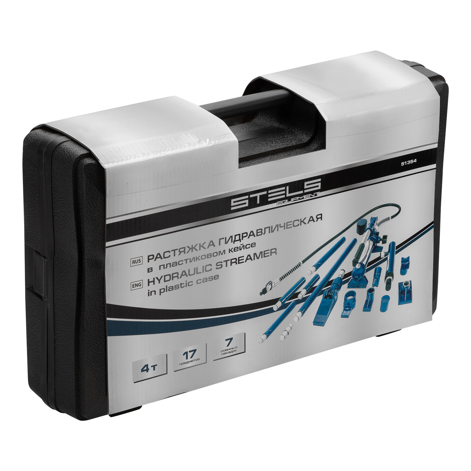 Растяжка гидравлическая, 4 т, набор из 17 предметов, 7 сменных насадок, в пластиковом кейсе Stels в Екатеринбурге