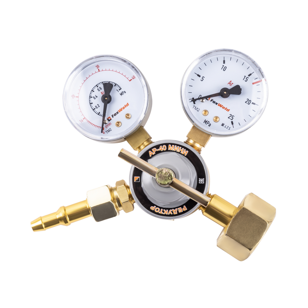 Редуктор аргоновый АР-40 МИНИ предназначен для регулировки подачи аргона на выходе из баллона, снижает и выравнивает давление газа до рабочего уровня, поддерживает его заданный расход при газопламенной обработке. Облегчённая модель отличается компактными параметрами и материалом. Корпус выполнен из алюминия. Контроль над давлением осуществляется с помощью двух манометров: высокого давления на входе и низкого давления на выходе в рабочей камере. Аргоновый редуктор необходим при проведении газосварочных работ, пайке и резке металлов, газового напыления.ВЫСОКАЯ ЭФФЕКТИВНОСТЬ: Газовый регулятор обеспечивает меньший расход рабочих газов при газосварочном процессе, поддерживает заданный уровень давления до окончания работы и экономит газ в баллоне.ВНЕШНИЕ РЕГУЛИРОВКИ: Аргоновый редуктор имеет вентиль регулировки подачи газа. Для качественного выполнения газосварочных работ необходимо создать рабочую среду и контролировать расход газа, поступающий из баллона. Вентиль снижает или понижает поступающее давление - можно настроить необходимое рабочее давление на выходе и проконтролировать процесс с помощью манометров.ВСТРОЕННЫЙ МАНОМЕТР: Встроенный манометр давления на входе показывает давление поступающего из баллона газа. С помощью манометра удобно отслеживать уровень давления и задать необходимый объём для работы. Регулировка давления подачи газа осуществляется с помощью наружного вентиля.КОМПЛЕКТАЦИЯ: Редуктор АР-40 МИНИ – 1 шт.; Индивидуальная упаковка – 1 шт.; Инструкция по эксплуатации – 1 шт.*Производитель оставляет за собой право менять комплектацию оборудования.