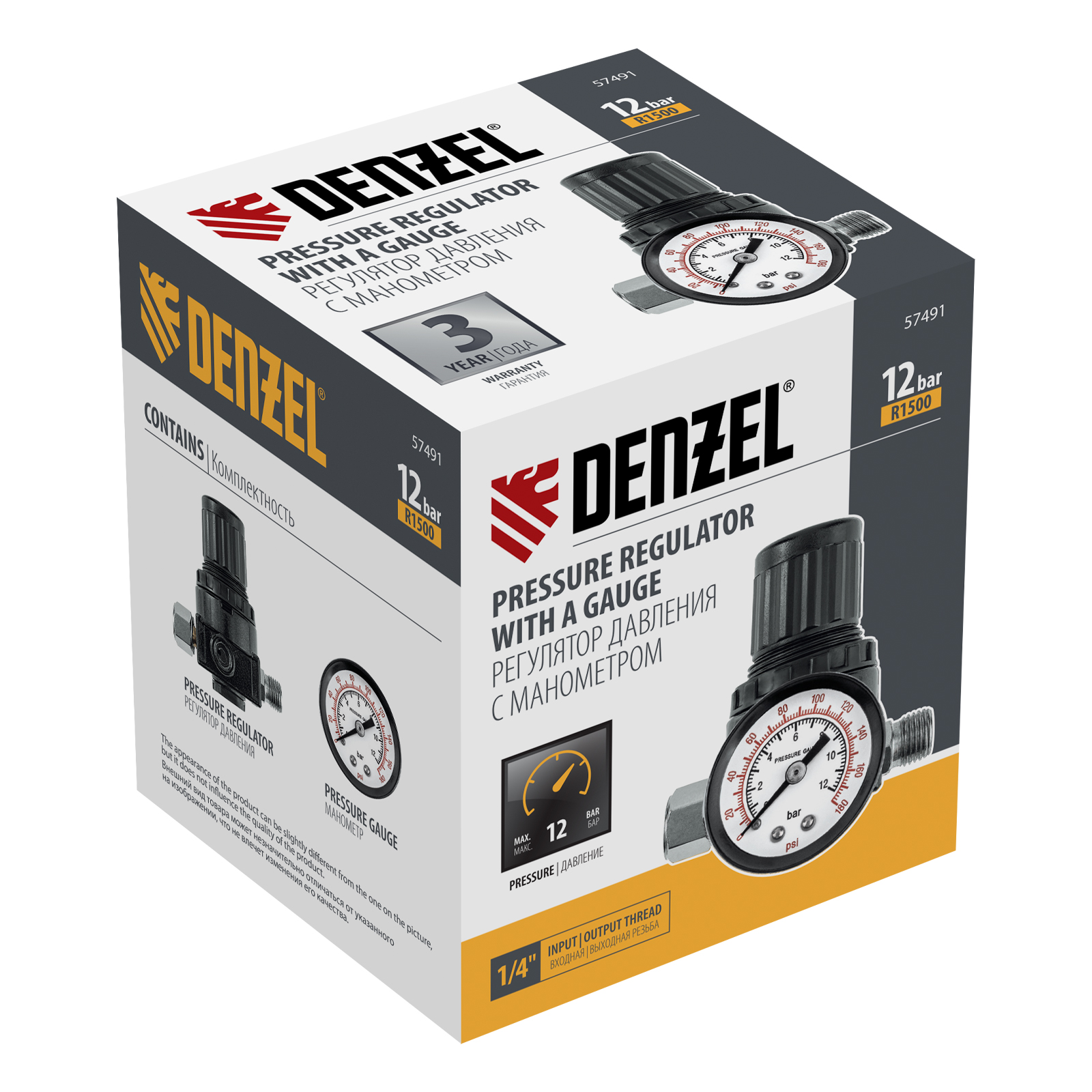 Регулятор давления с манометром R1500, 12 бар, 1/4" Denzel в Екатеринбурге