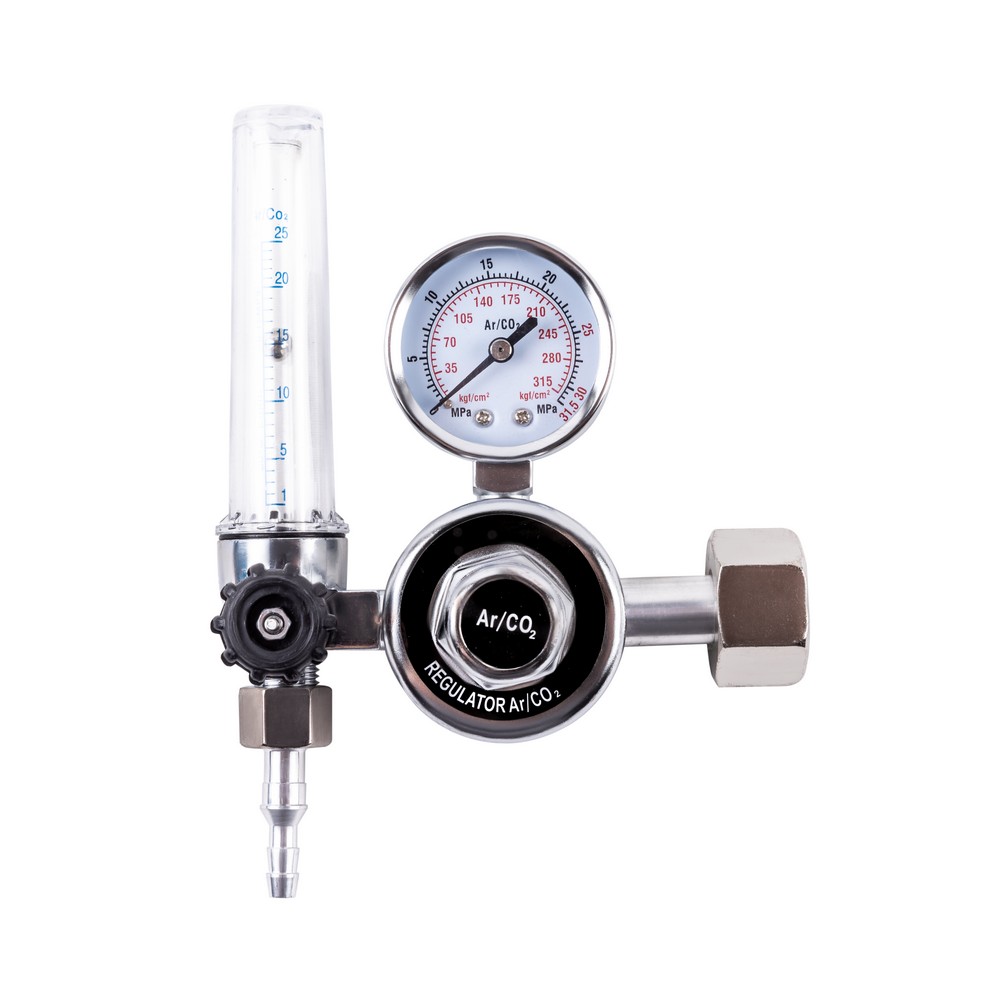Регулятор расхода газа VARTEG УРГ-40 предназначен для понижения давления газа и автоматического поддержания заданного расхода на постоянном уровне. Регулятор используется в работе с химическим соединением аргона или углекислого газа. Корпус включает в себя манометр и ротаметр, которые позволяют точно отрегулировать расход газа на выходе из баллона. Аргоновый регулятор оснащен вентилем для регулирования подачи газа, что делает процесс газосварки удобным и качественным.ВЫСОКАЯ ЭФФЕКТИВНОСТЬ: Газовый регулятор обеспечивает меньший расход рабочих газов при газосварочном процессе, поддерживает заданный уровень давления до окончания работы и экономит газ в баллоне.ВНЕШНИЕ РЕГУЛИРОВКИ: Регулятор имеет вентиль регулировки подачи газа. Для качественного выполнения газосварочных работ необходимо создать рабочую среду и контролировать расход газа, поступающий из баллона. Вентиль снижает или понижает поступающее давление - можно настроить необходимое рабочее давление на выходе и проконтролировать процесс с помощью манометра.ВСТРОЕННЫЙ МАНОМЕТР: Встроенный манометр давления на входе показывает давление поступающего из баллона газа. С помощью манометра удобно отслеживать уровень давления и задать необходимый объём для работы. Регулировка давления подачи газа осуществляется с помощью наружного вентиля.КОМПЛЕКТАЦИЯ: Регулятор VARTEG УРГ-40 – 1 шт.; Гайка G 1/4” внутренняя резьба – 1 шт.; Штуцер 6 мм / 9 мм – 1 шт.; Инструкция по эксплуатации – 1 шт.*Производитель оставляет за собой право менять комплектацию оборудования.