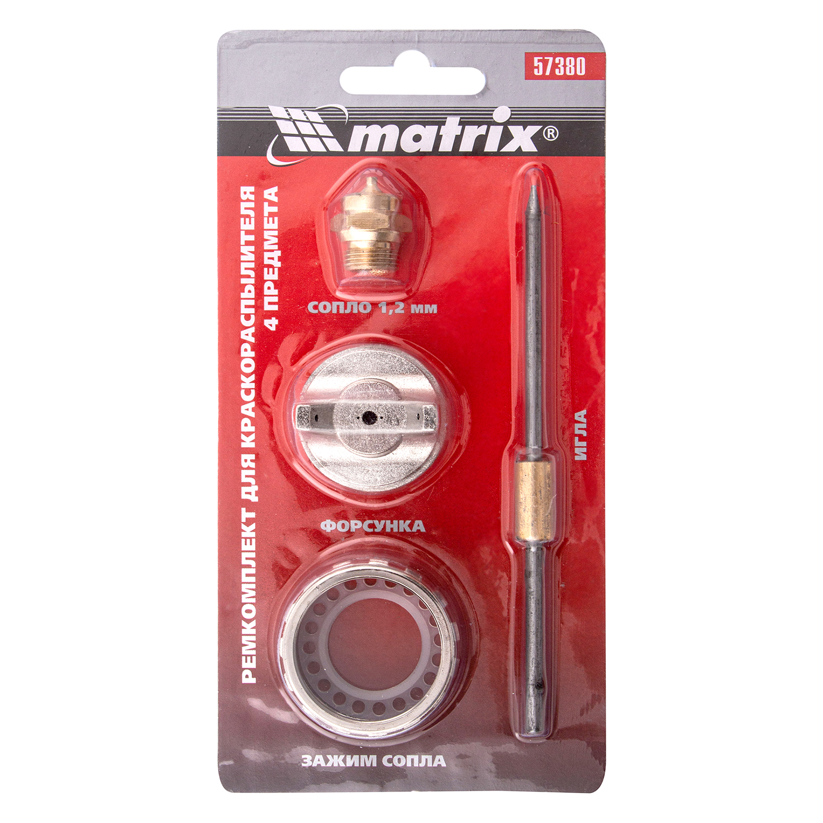 Ремкомплект для краскораспылителя 4 предмета : сопло 1.2 мм + игла + форсунка + зажим сопло Matrix в Екатеринбурге
