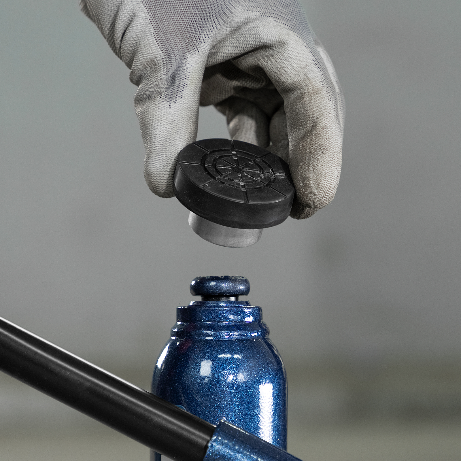 - Увеличенная площадь опоры — диаметр накладки более чем вдвое превышает диаметр штока домкрата, что позволяет равномерно распределить нагрузку и обеспечить устойчивость груза.