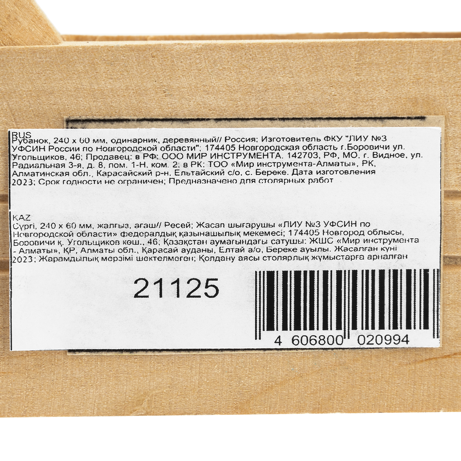 Рубанок, 240 х 60 мм, одинарник, деревянный в Екатеринбурге