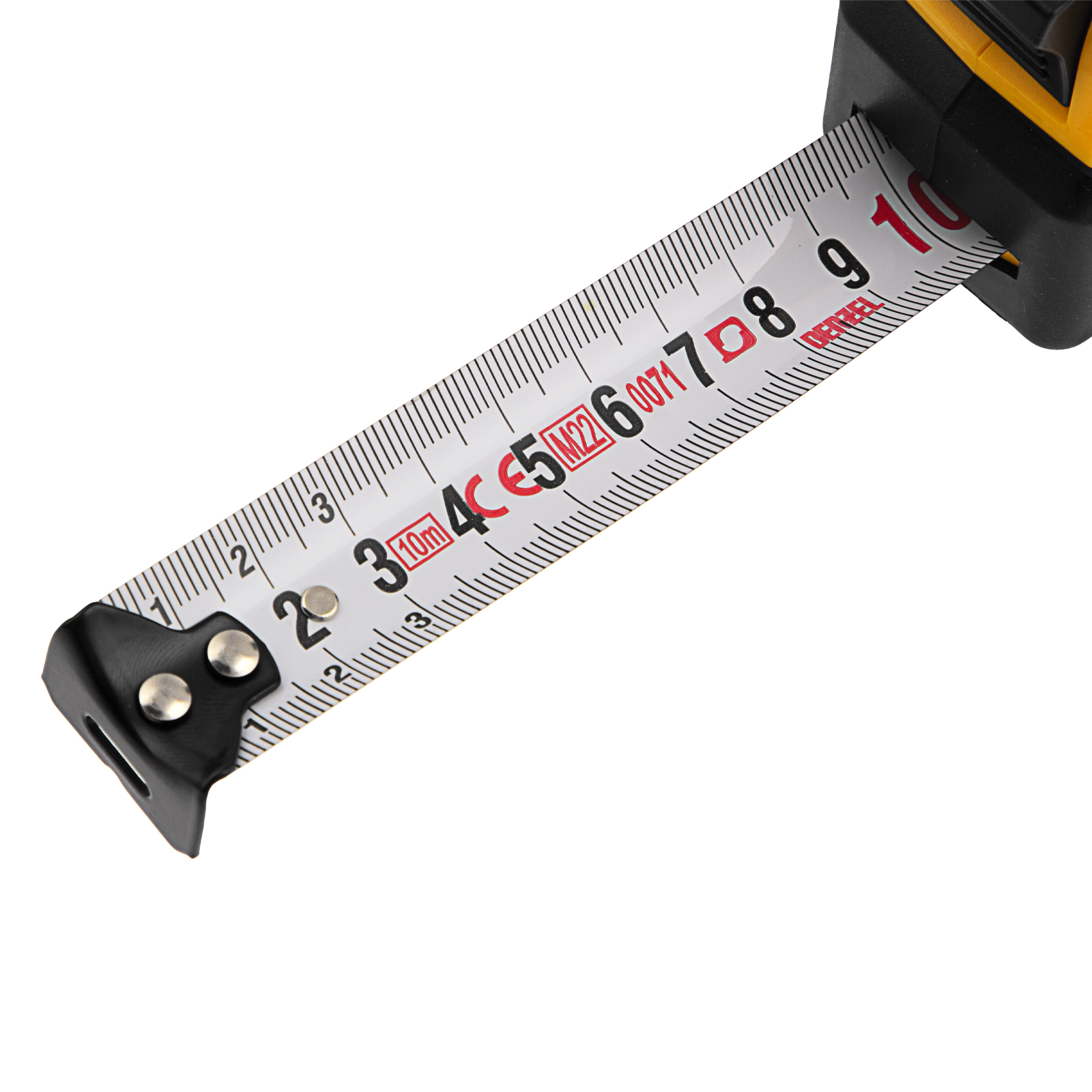 Рулетка Denzel 31545 в двухкомпонентном корпусе, с кнопкой-паузой, с полотном шириной 25 мм и длиной 10 м, используется для измерения расстояний и размеров предметов. Удобна для работы в труднодоступных местах. Стальная лента с эмалевым покрытием и защитной пластиной в месте крепления зацепа рассчитана на долгий срок службы. Рулетка будет полезна во время строительства и ремонта, а также пригодится в быту.