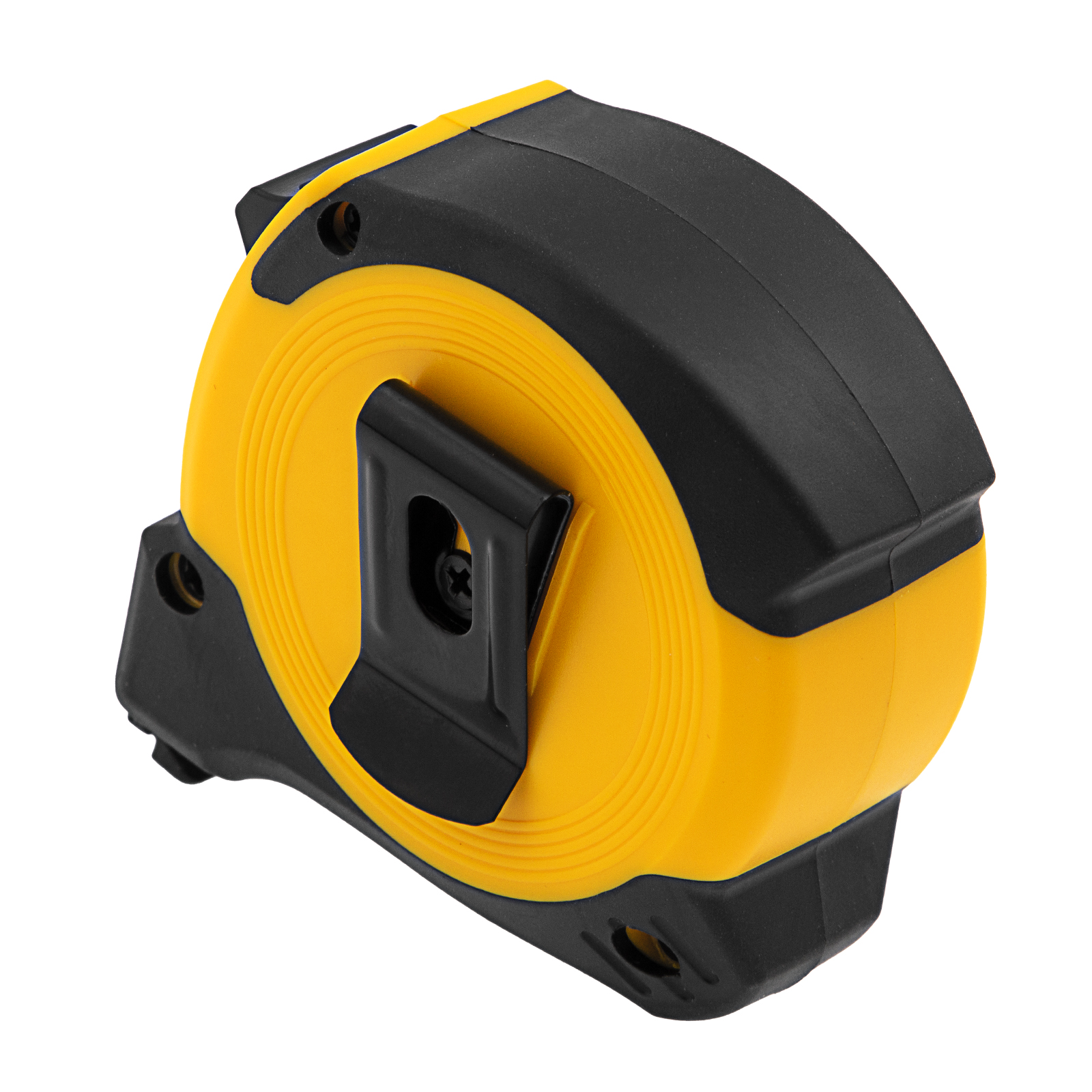 - Удобная фиксация на ремне — рулетка дополнена поясным зажимом.