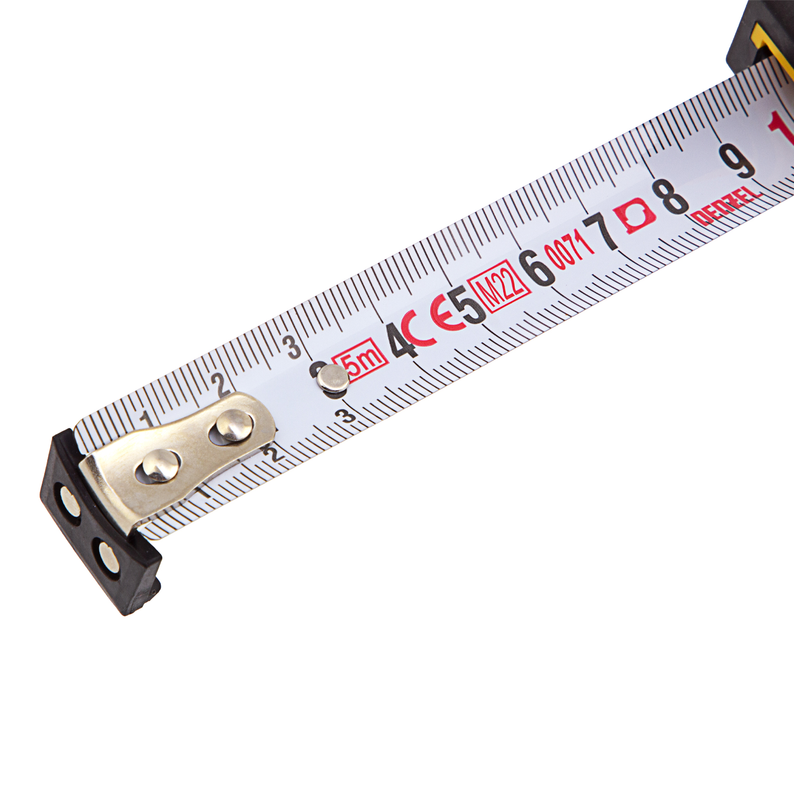 - Надежность — стальная лента с эмалевым покрытием и защитной пластиной в месте крепления зацепа выдерживает интенсивное использование.