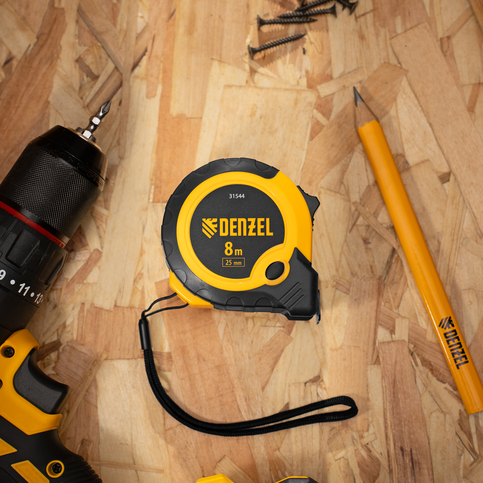 Рулетка 8м х 25мм, двухкомп. корпус, кнопка-пауза Denzel в Екатеринбурге