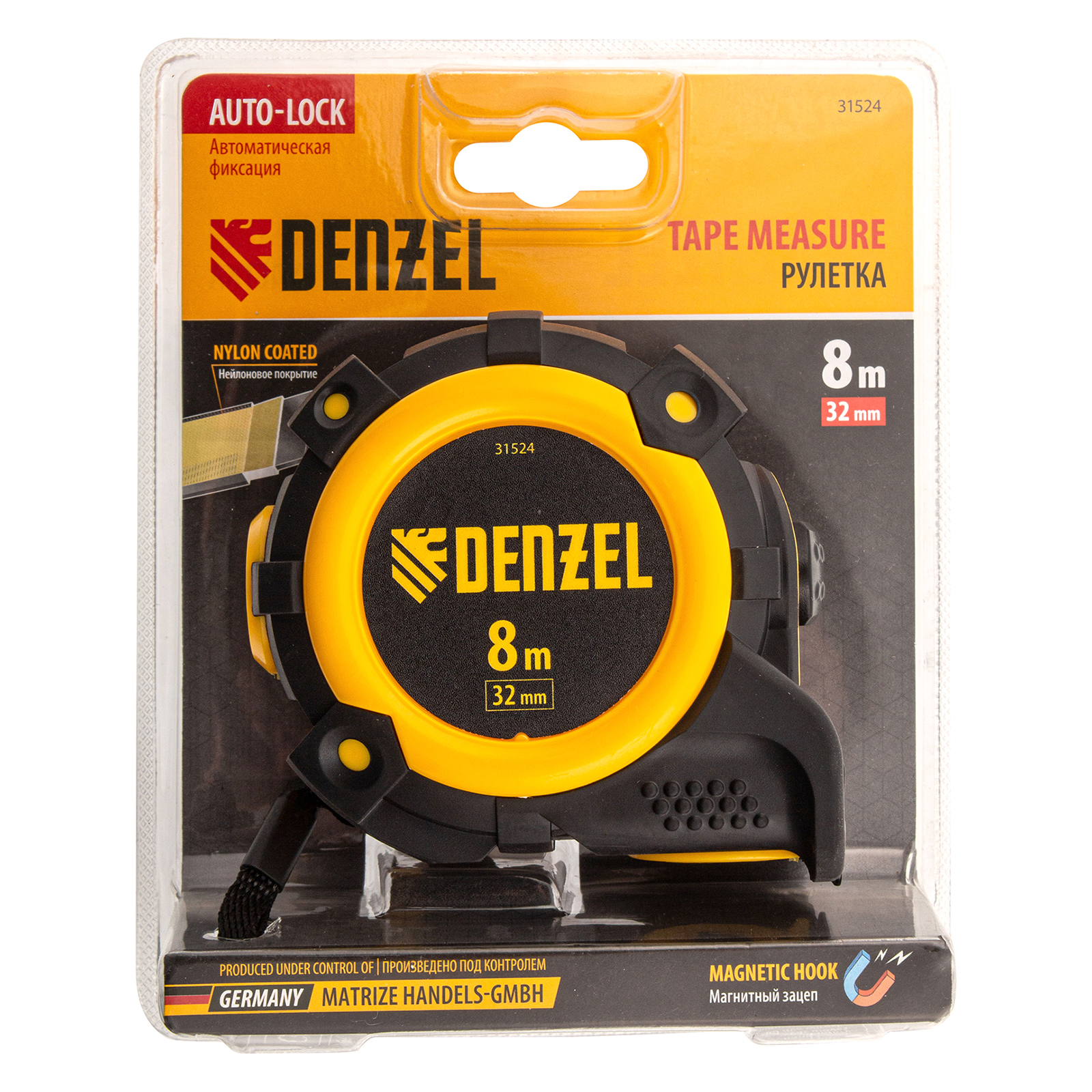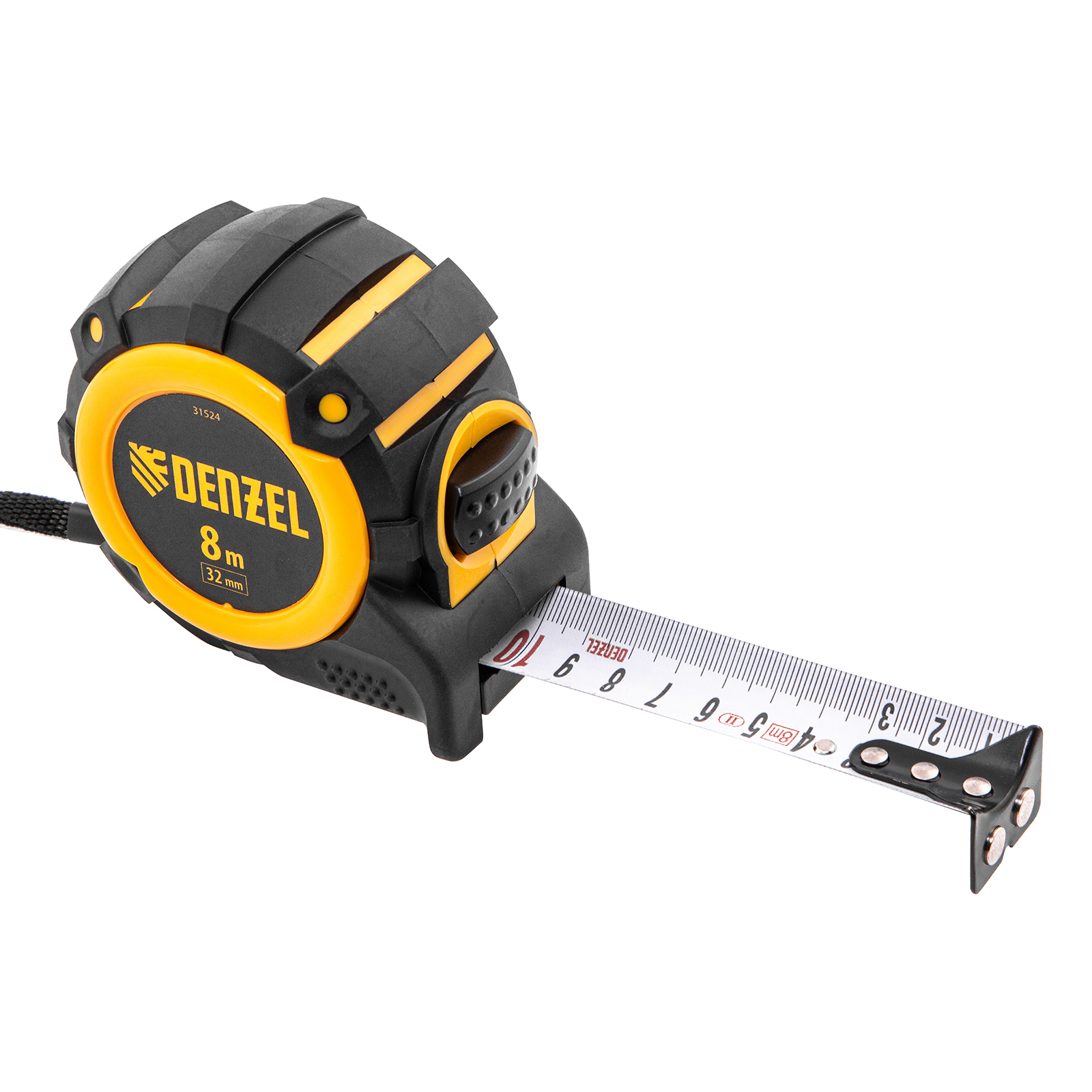 Рулетка 8м х 32мм, автоматич. фиксац., нейлон. покрытие, магнит. зацеп, двухстор. разметка Denzel в Екатеринбурге