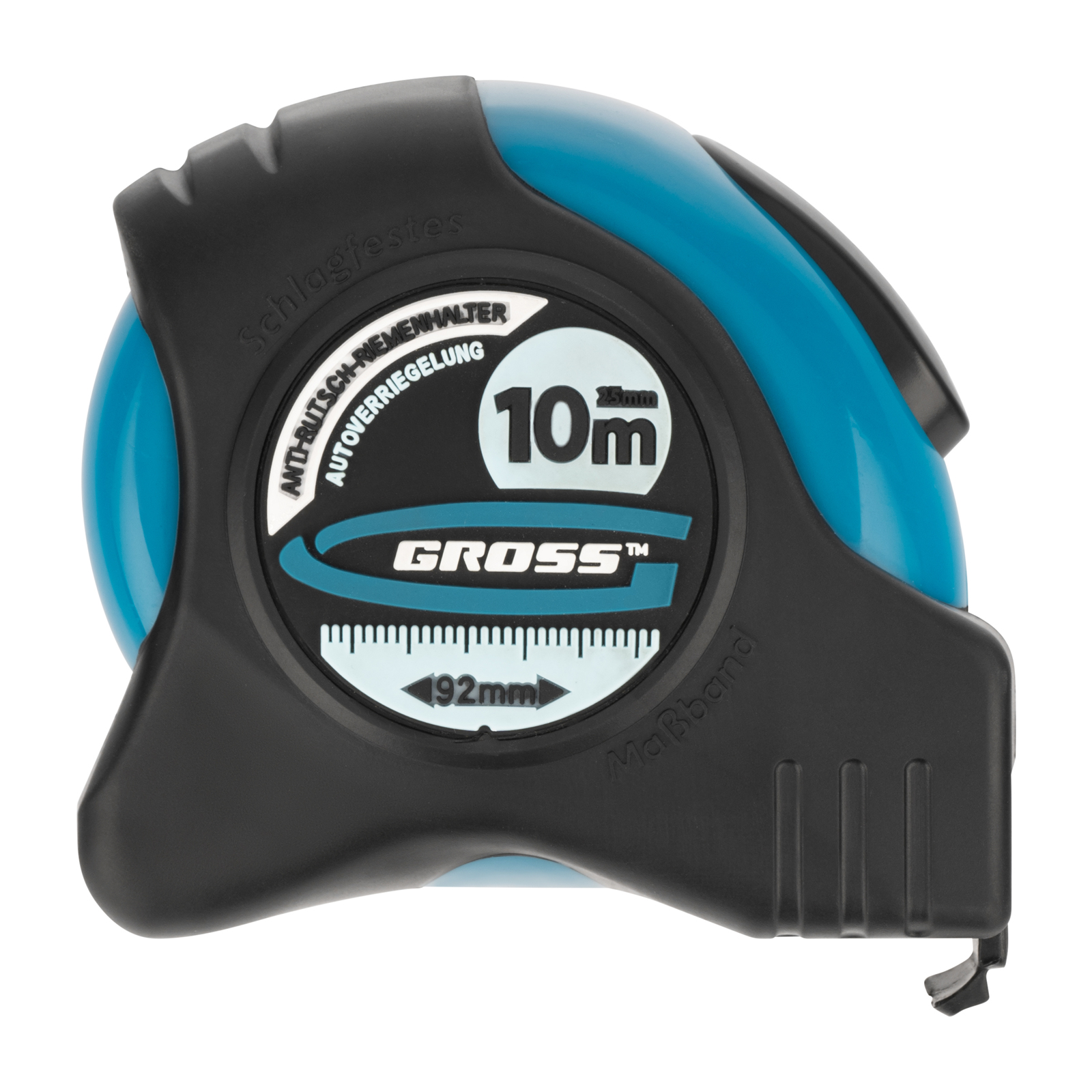 Рулетка Gross «Schlagfest» 31115 с магнитным обрезиненным зацепом, двухсторонней шкалой и функцией автоматической фиксации полотна длиной 10 м и шириной 25 мм, с нейлоновым покрытием, позволяет определять размеры предметов, вычислять площадь помещения и проводить другие измерительные работы. Магнитный обрезиненный зацеп надежно фиксируется на скользких и металлических поверхностях со сложной формой. Широкое упругое полотно облегчает работу в труднодоступных местах. Карманная рулетка пригодится на строительной площадке и в быту.