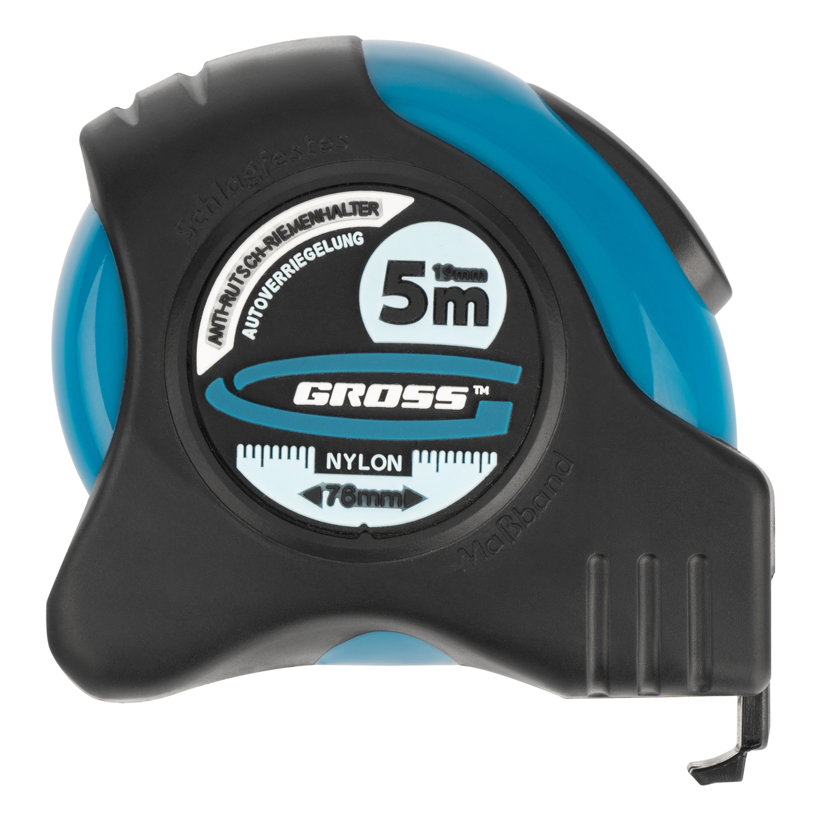 Рулетка "Schlagfest",5 м x 19 мм,магнитный обрезиненный зацеп,двусторонняя шкала,Нейлоновое покрытие,автоматическая фиксация Gross в Екатеринбурге