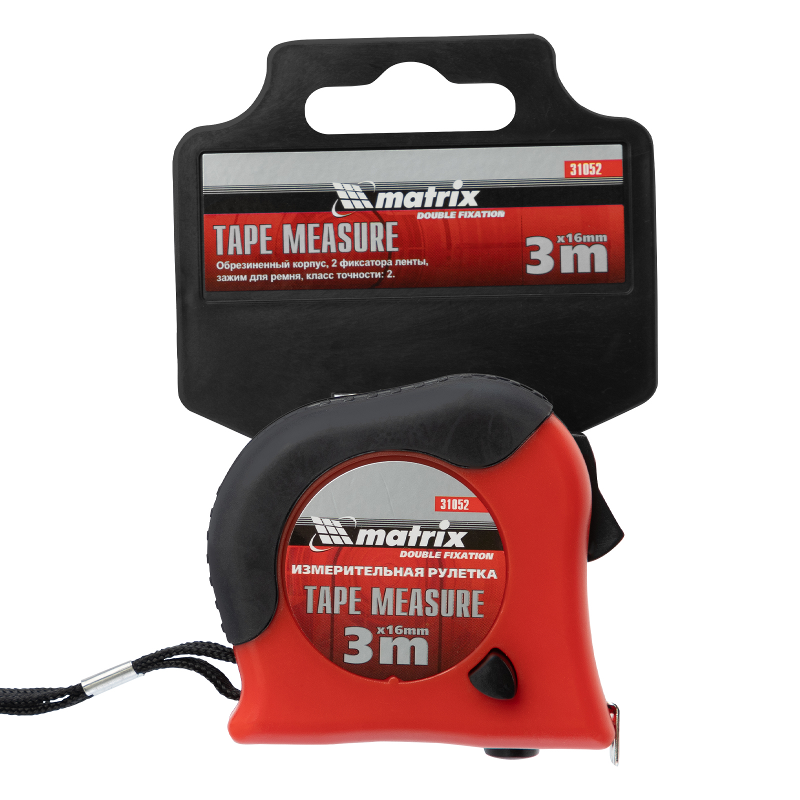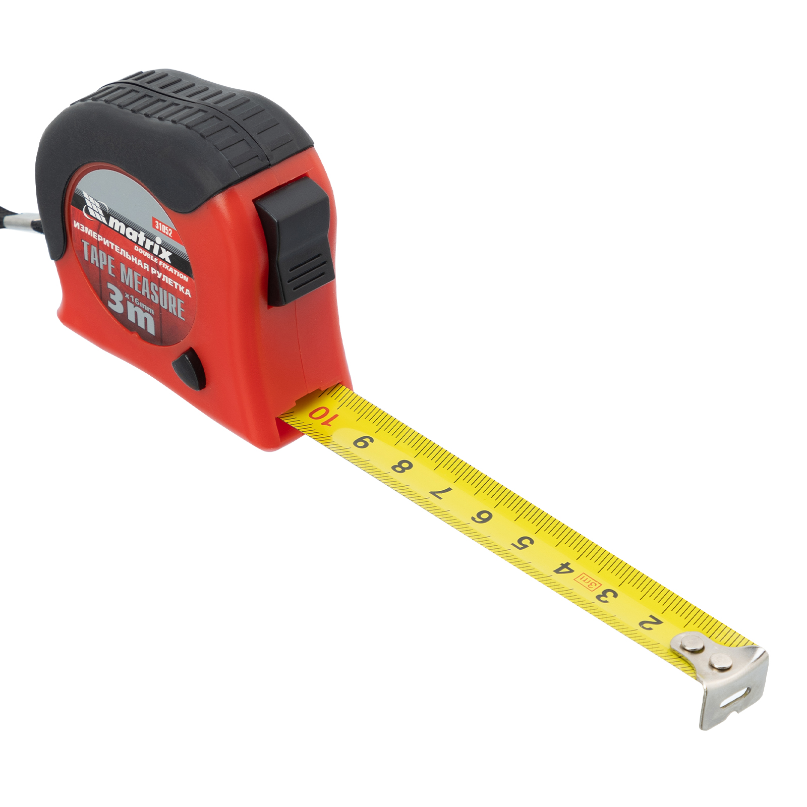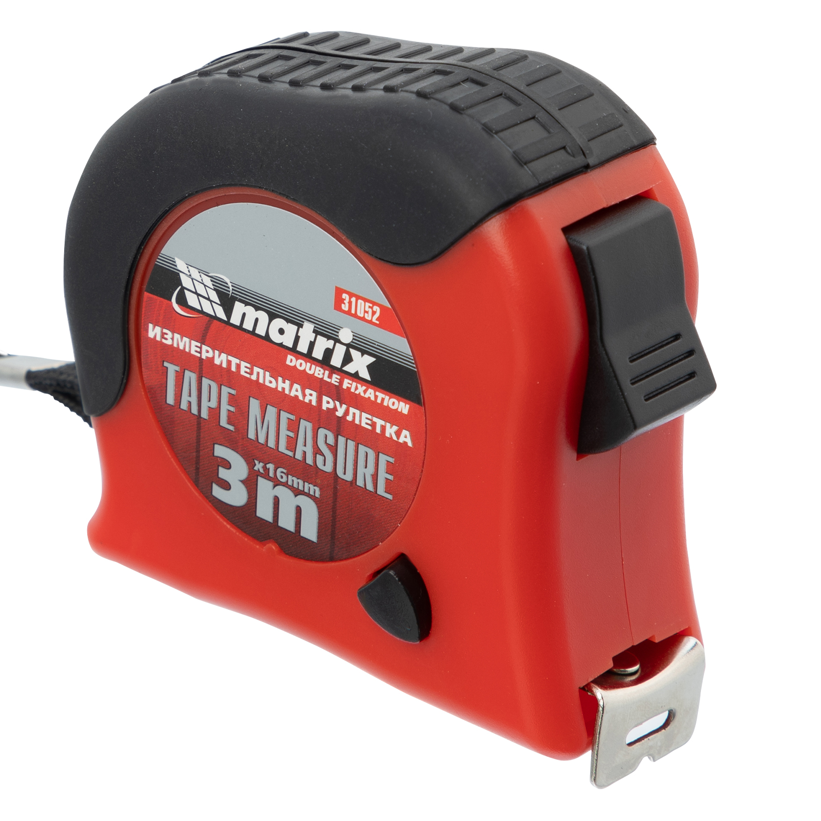 Рулетка Double fixation,3 м х 16 мм,обрезиненный корпус,двойная плавная фиксация Matrix в Екатеринбурге