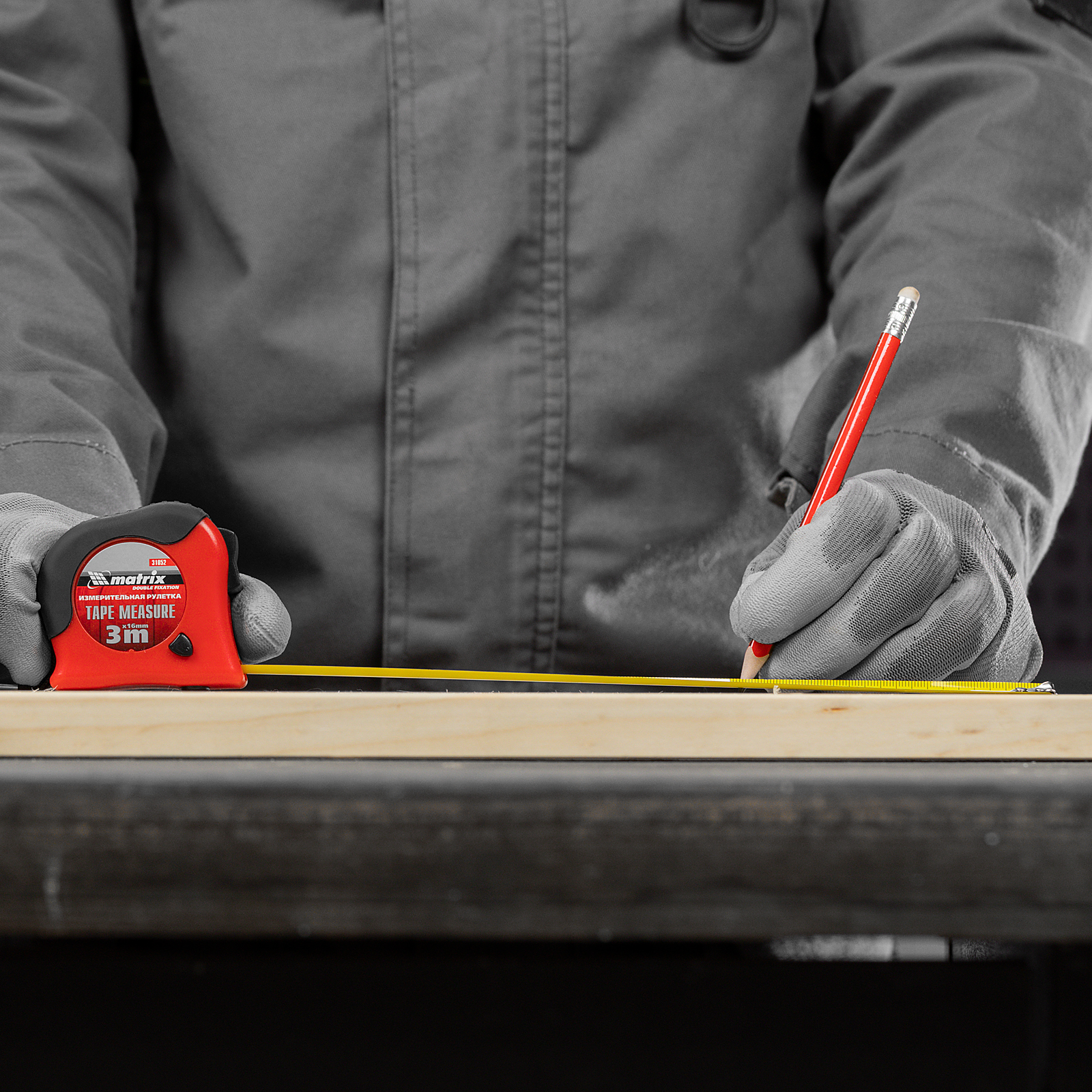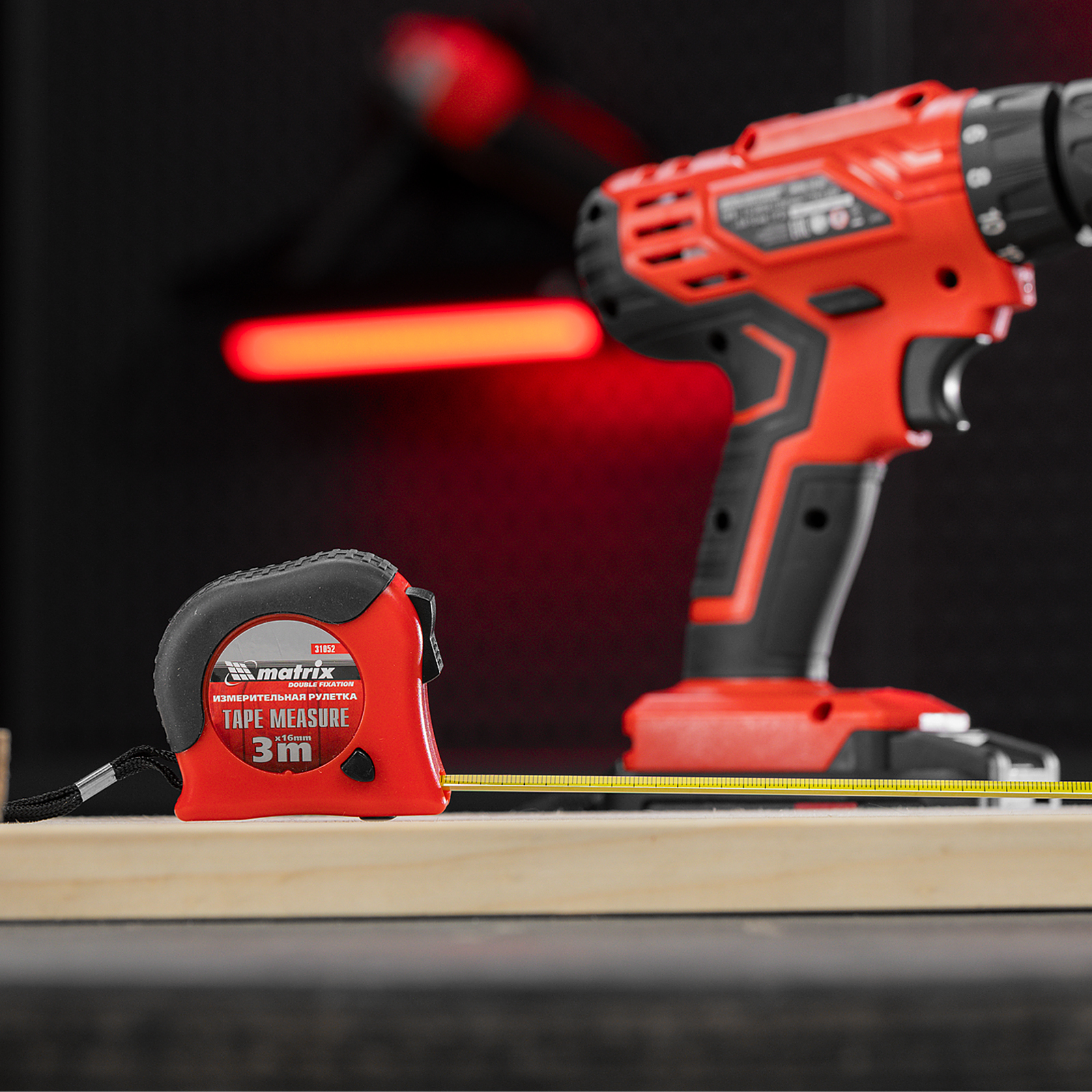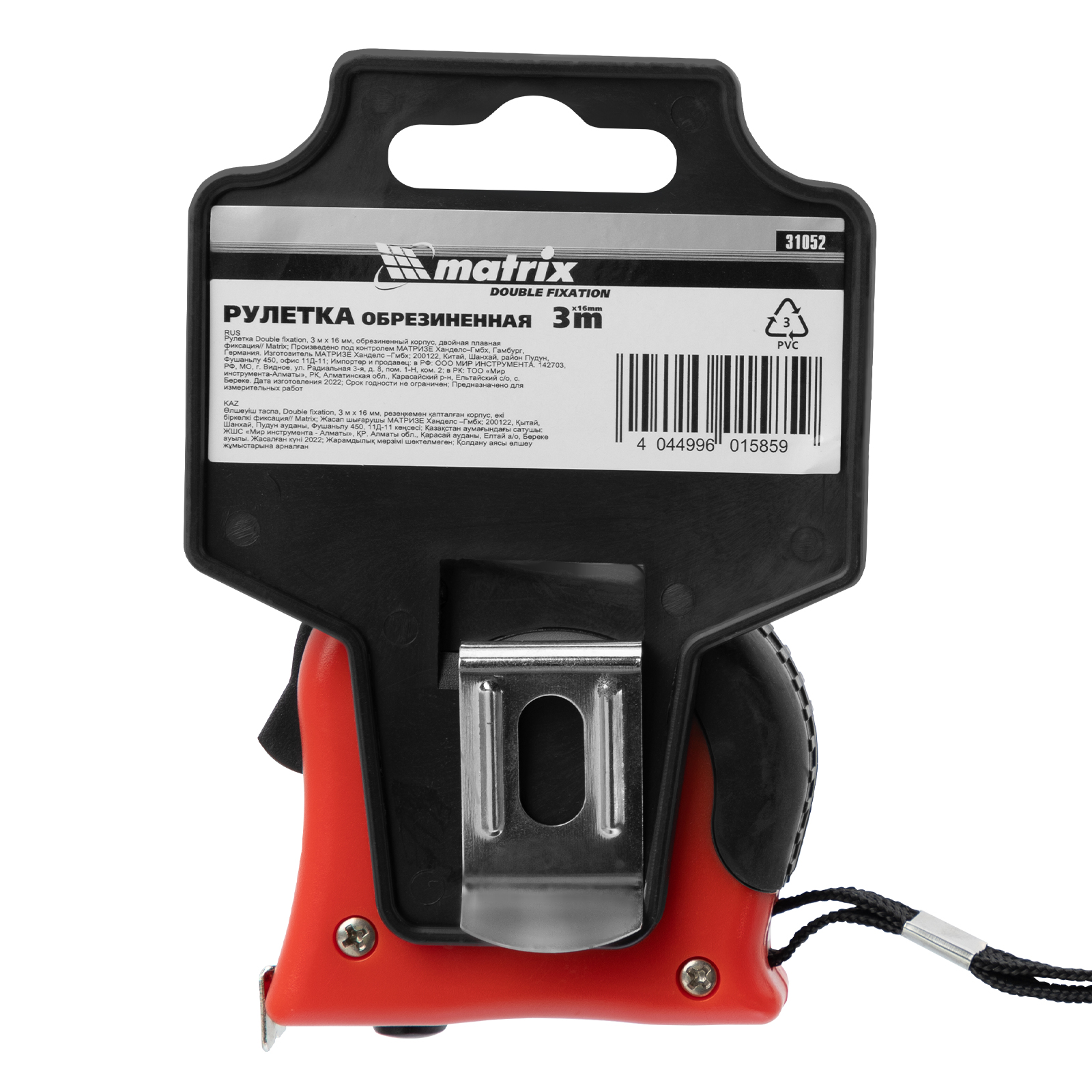 Рулетка Double fixation,3 м х 16 мм,обрезиненный корпус,двойная плавная фиксация Matrix в Екатеринбурге