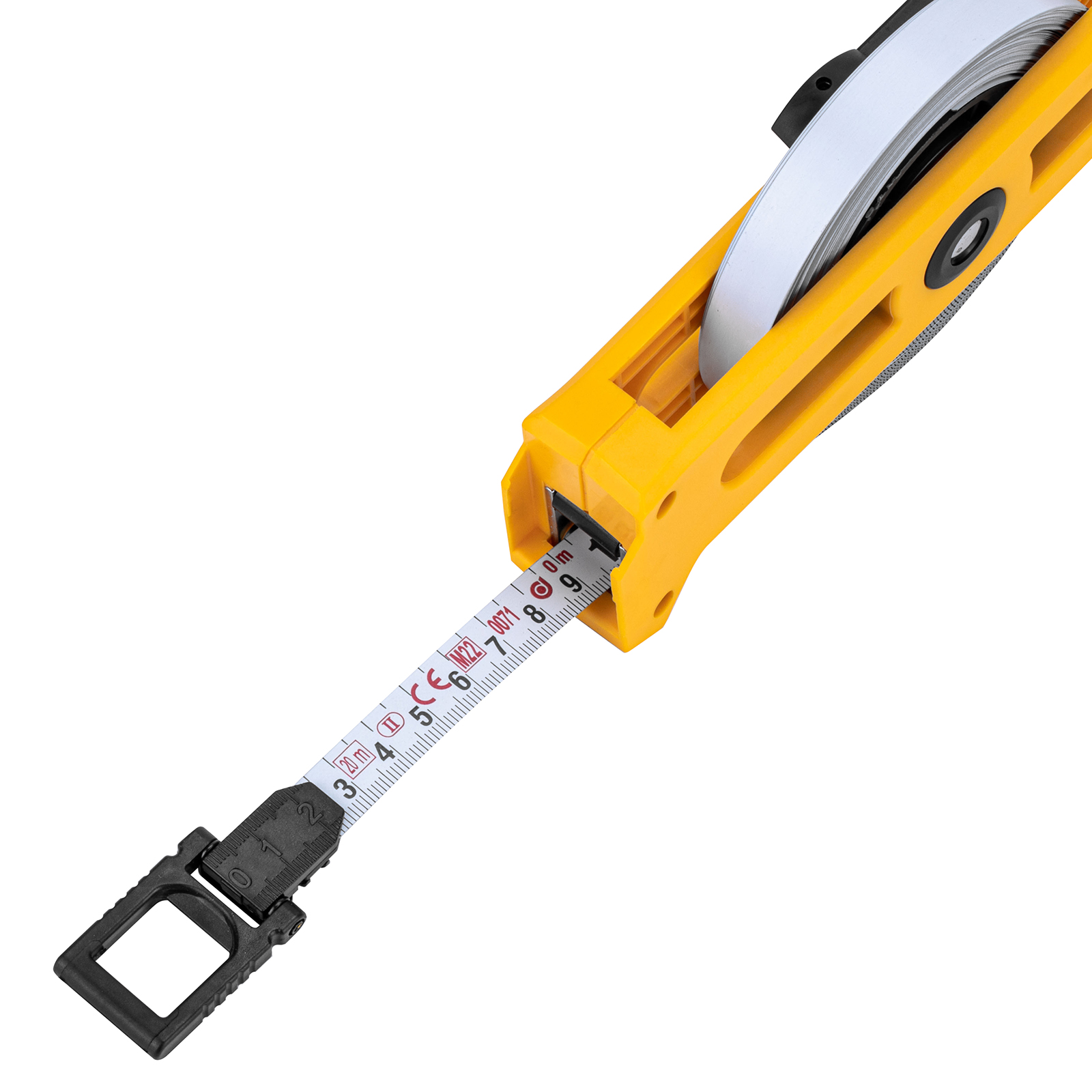 - Удобная фиксация измерительной ленты на объекте — рулетка оснащена кольцом с подвижным зацепом.