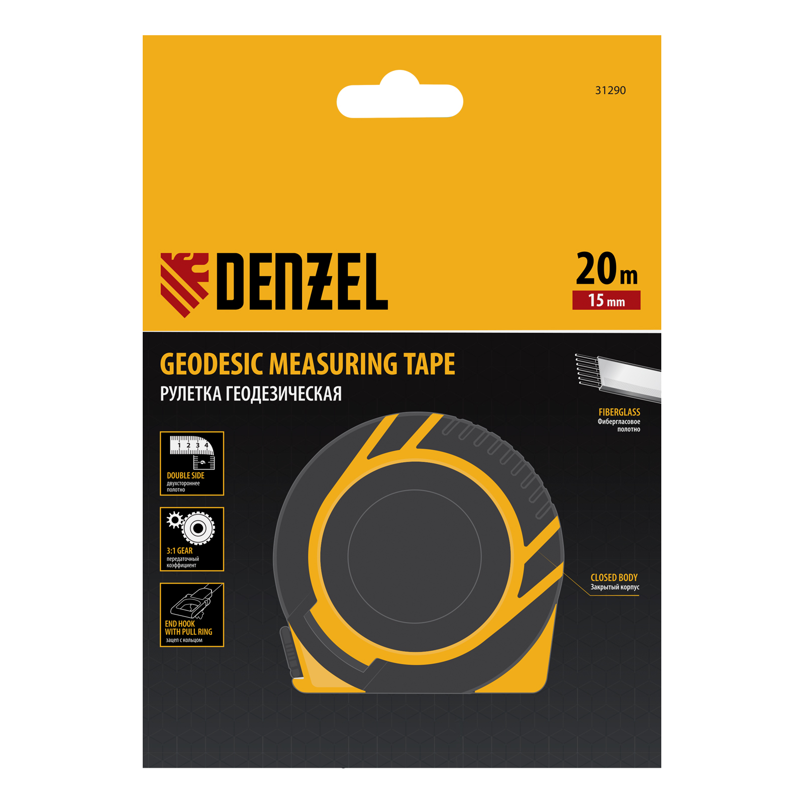 Рулетка геодезическая 20 м х 15 мм, закрытый корпус, фиберглассовая лента Denzel в Екатеринбурге