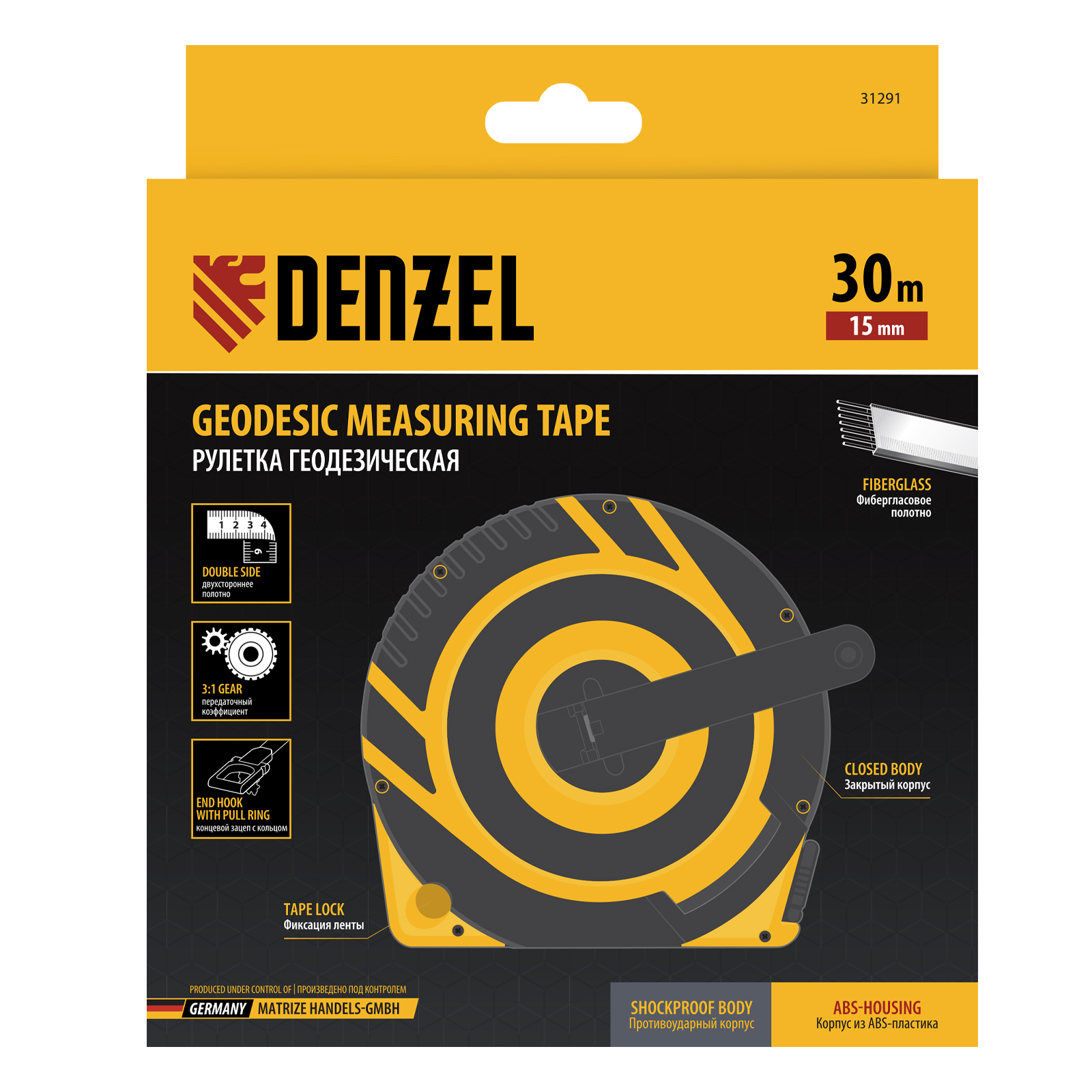 Рулетка геодезическая 30 м х 15 мм, закрытый корпус, фиберглассовая лента Denzel в Екатеринбурге