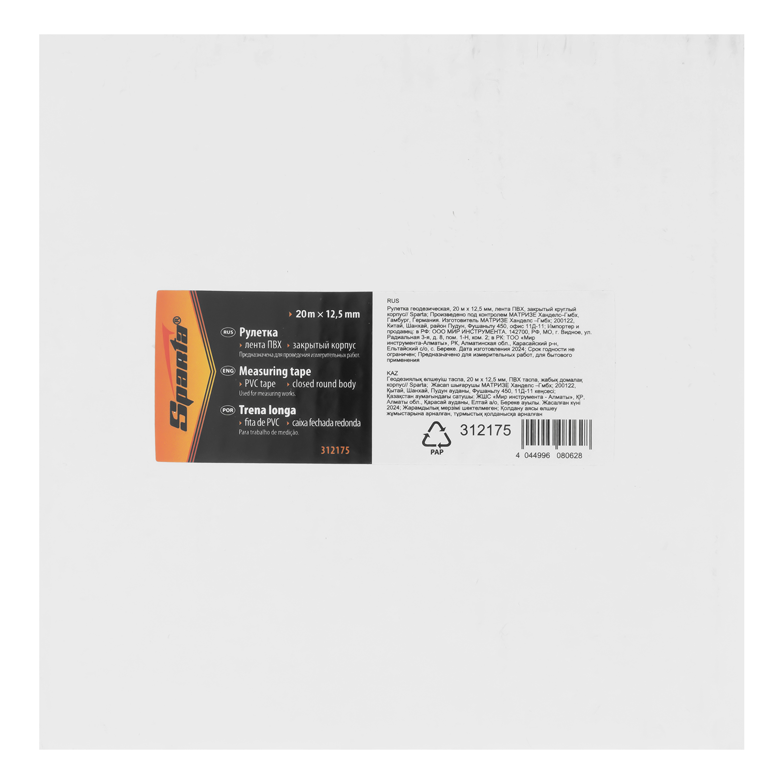 Рулетка геодезическая, 20 м х 12,5 мм, лента ПВХ, закрытый круглый корпус Sparta в Екатеринбурге