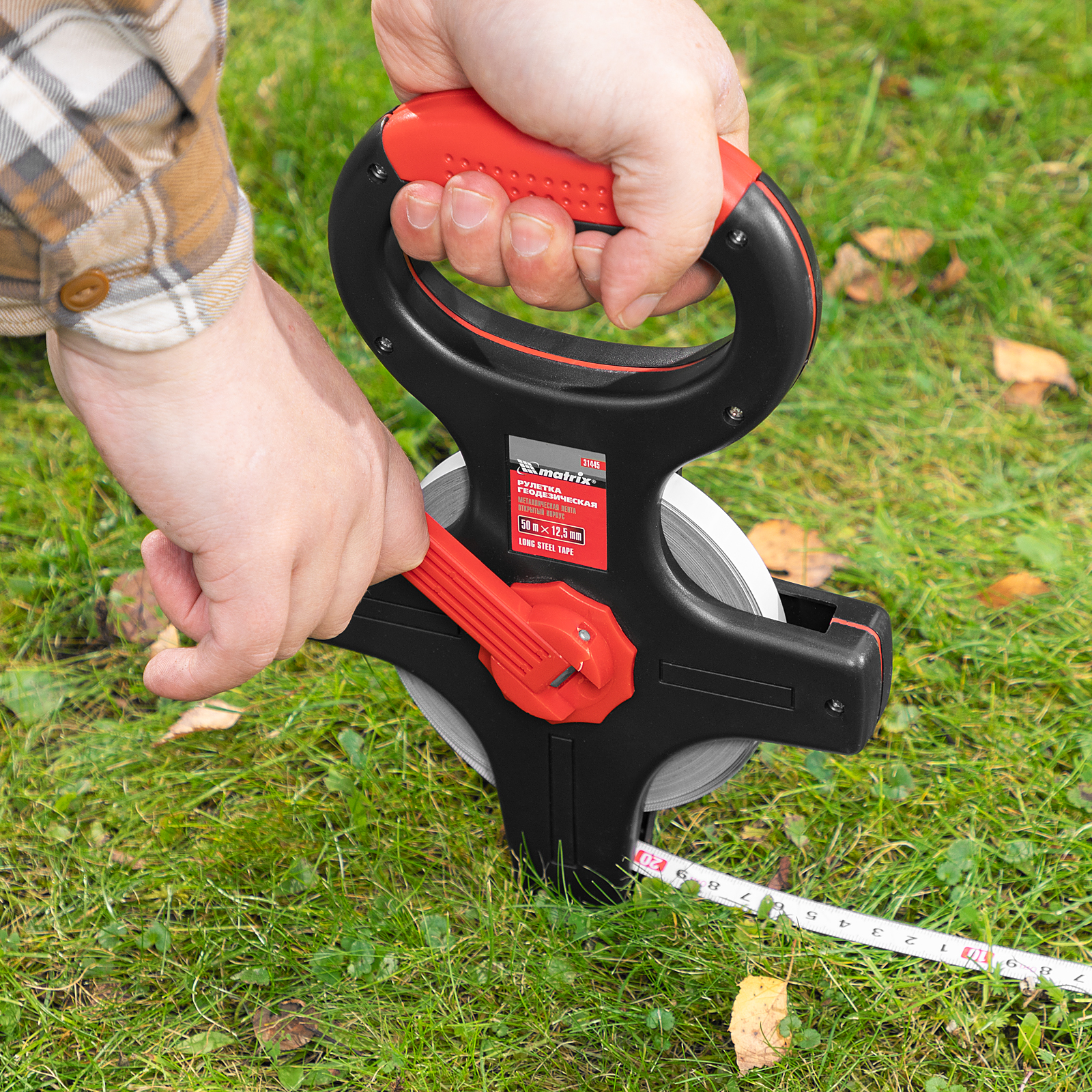 Рулетка геодезическая, 50 м х 12,5 мм, металлическая лента, открытый корпус Matrix в Екатеринбурге