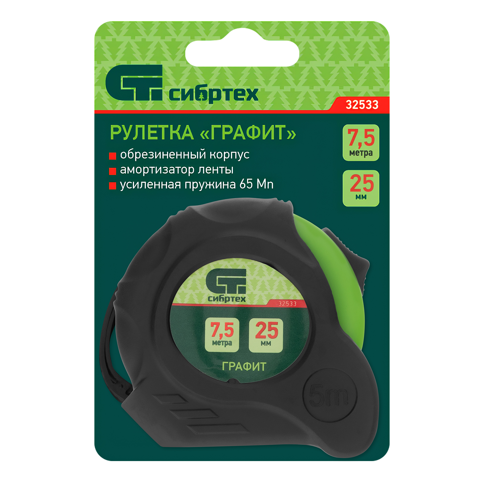 Рулетка Графит,обрезиненный корпус,амортизатор,7,5 м х 25 мм Сибртех в Екатеринбурге