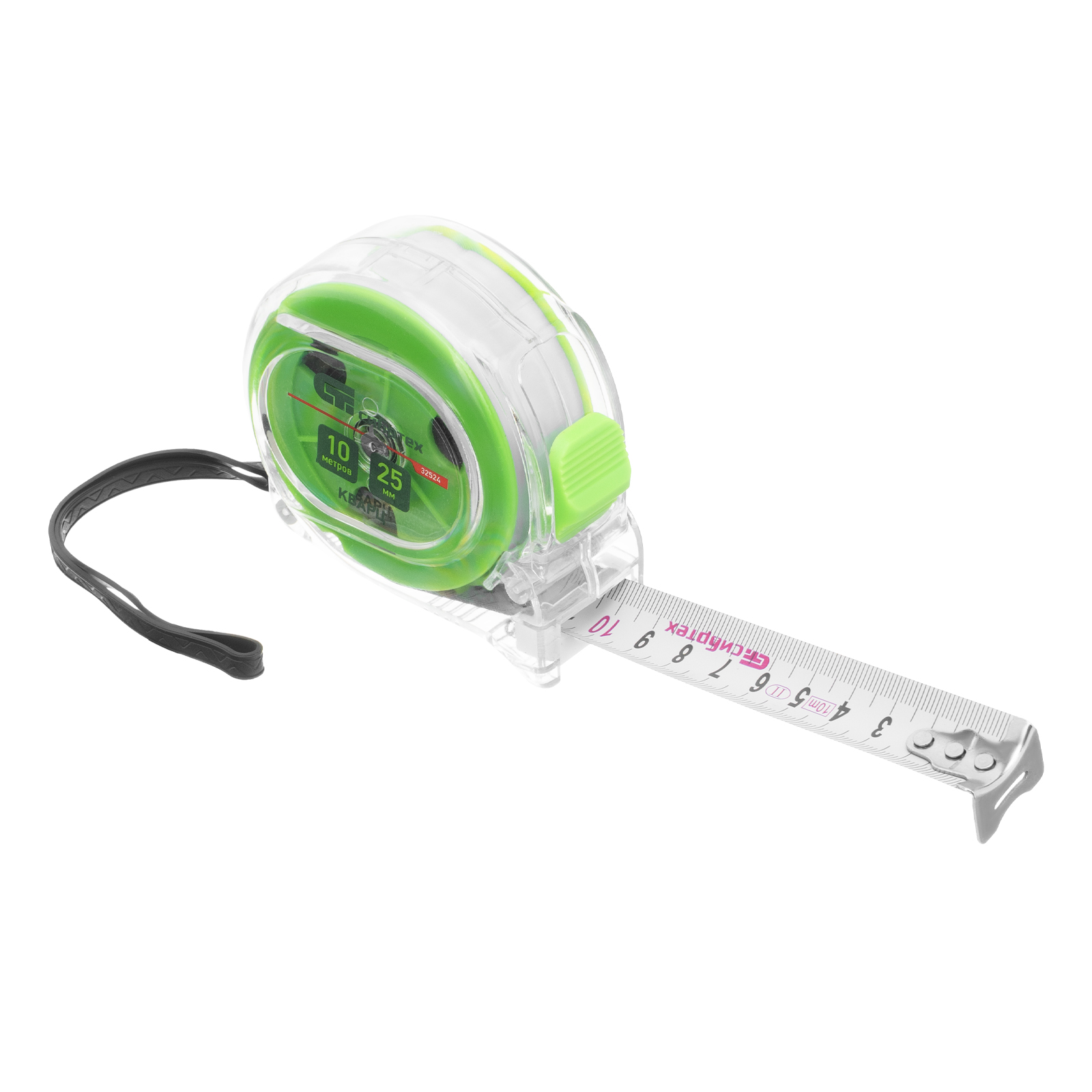 Рулетка Кварц,прозрачный корпус,амортизатор,10 м х 25 мм Сибртех в Екатеринбурге