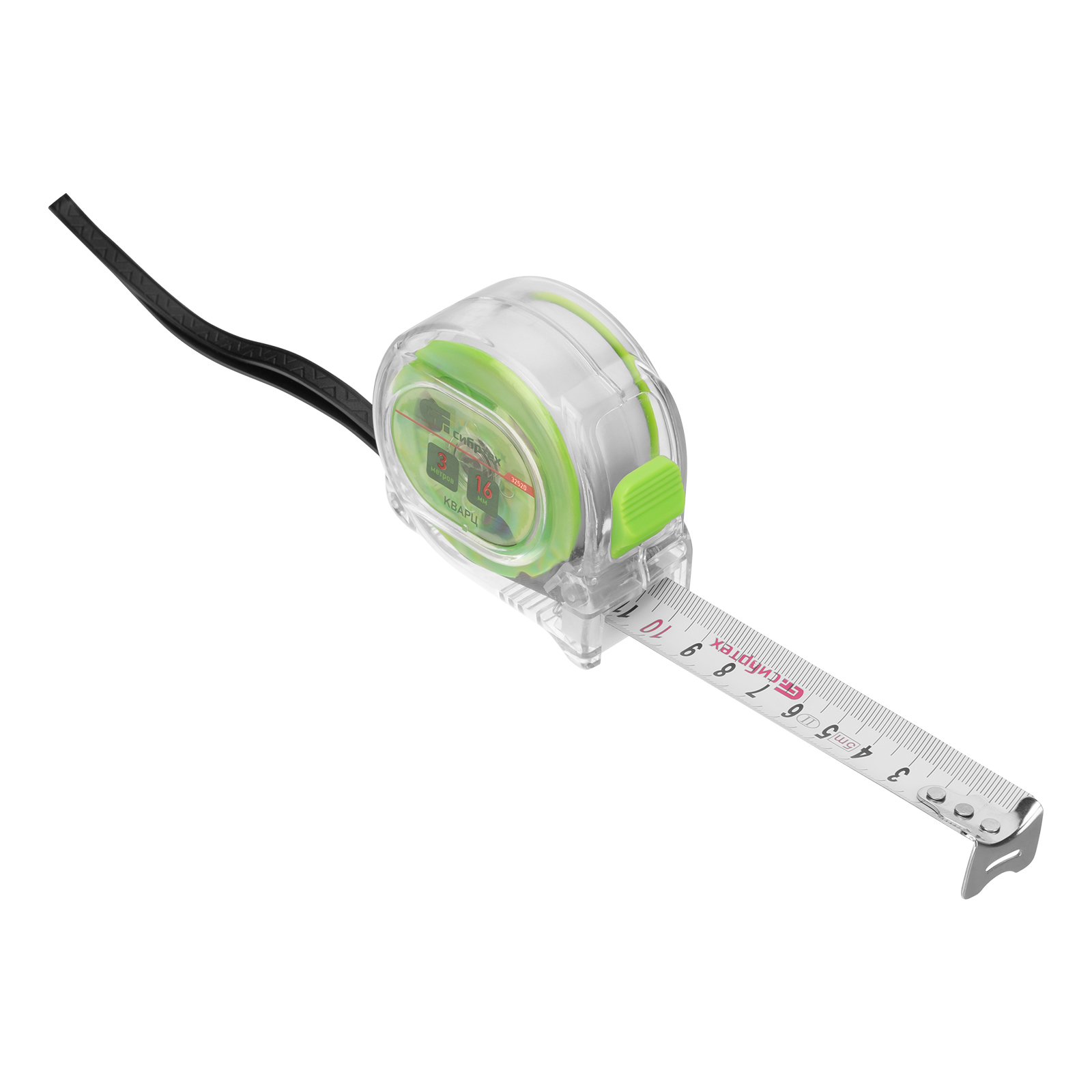 Рулетка Кварц,прозрачный корпус,амортизатор,3 м х 16 мм Сибртех в Екатеринбурге