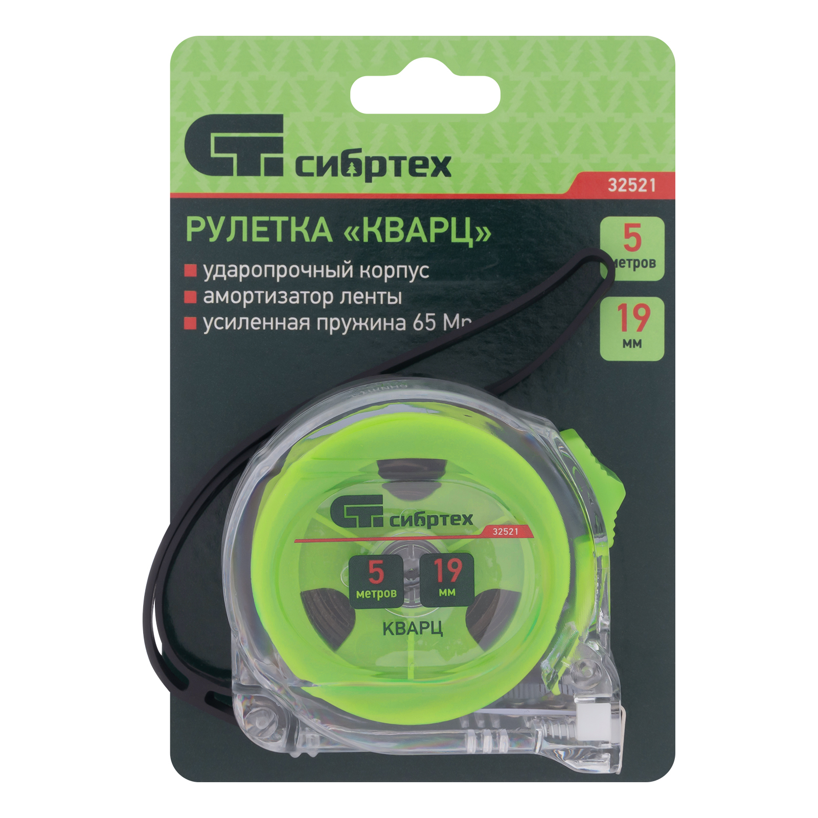 Рулетка Кварц,прозрачный корпус,амортизатор,5 м х 19 мм Сибртех в Екатеринбурге