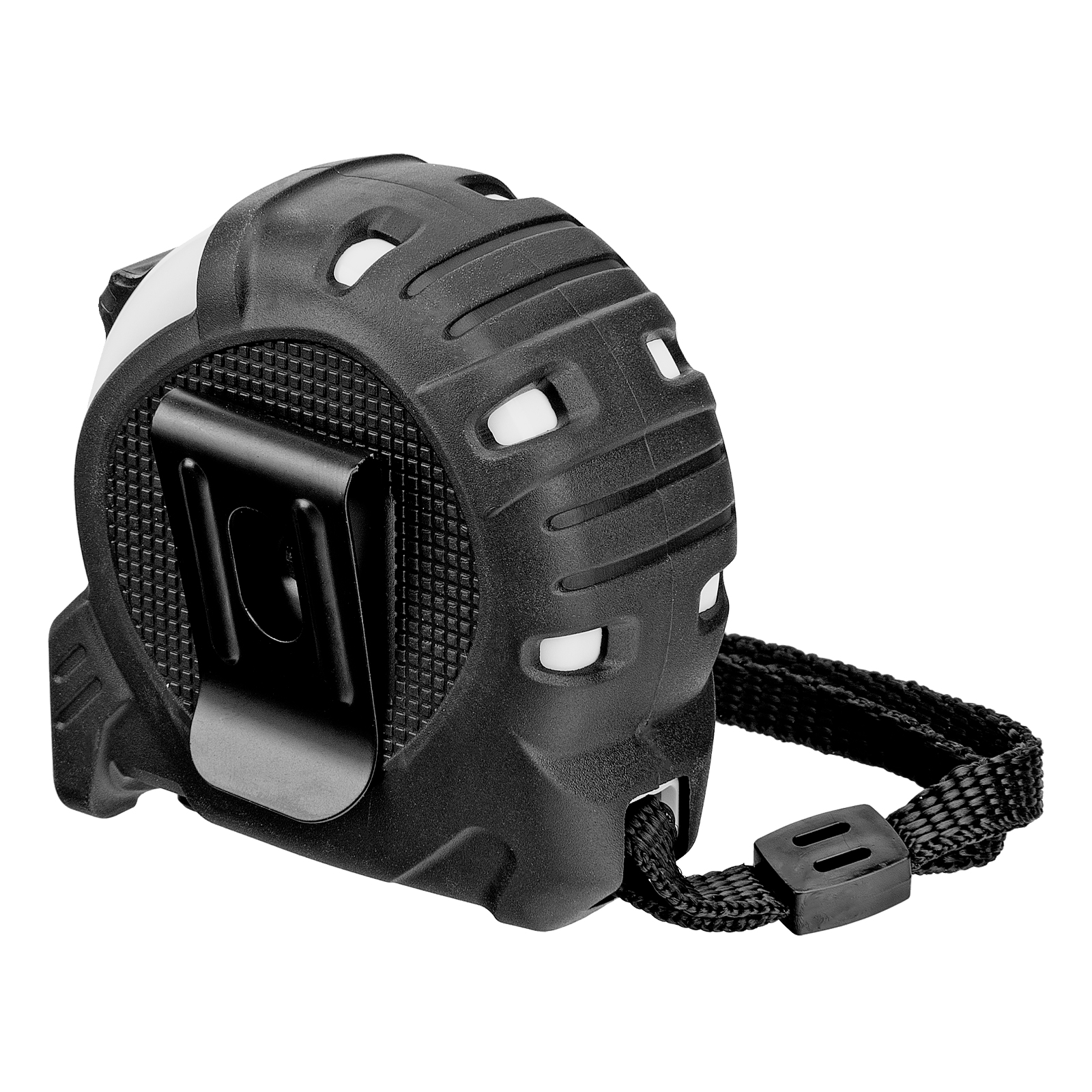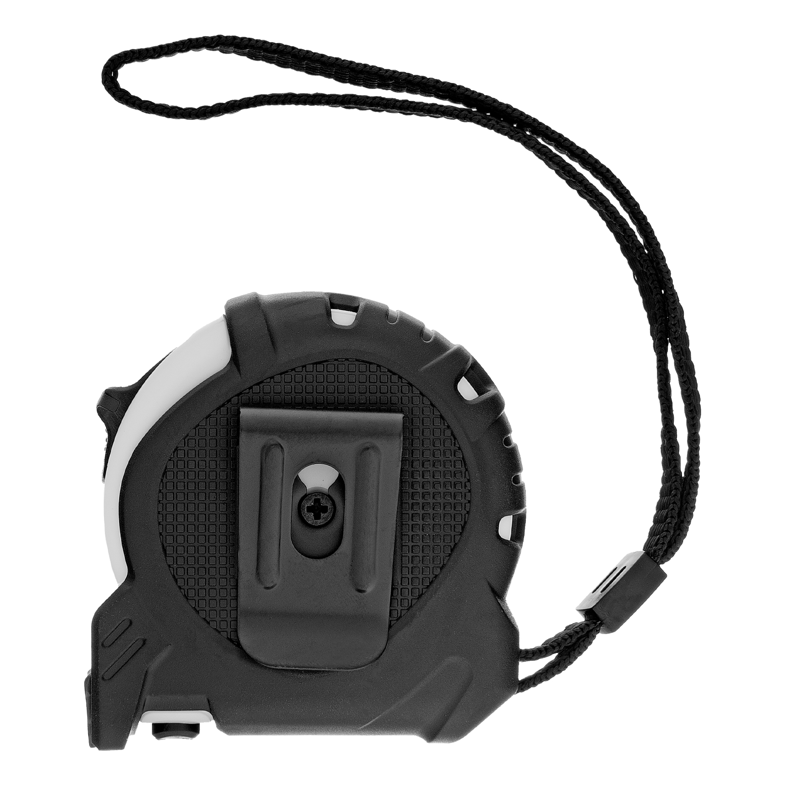 - Удобная транспортировка — рулетку можно повесить на запястье за ремешок или закрепить на поясе при помощи металлического зажима на корпусе.
