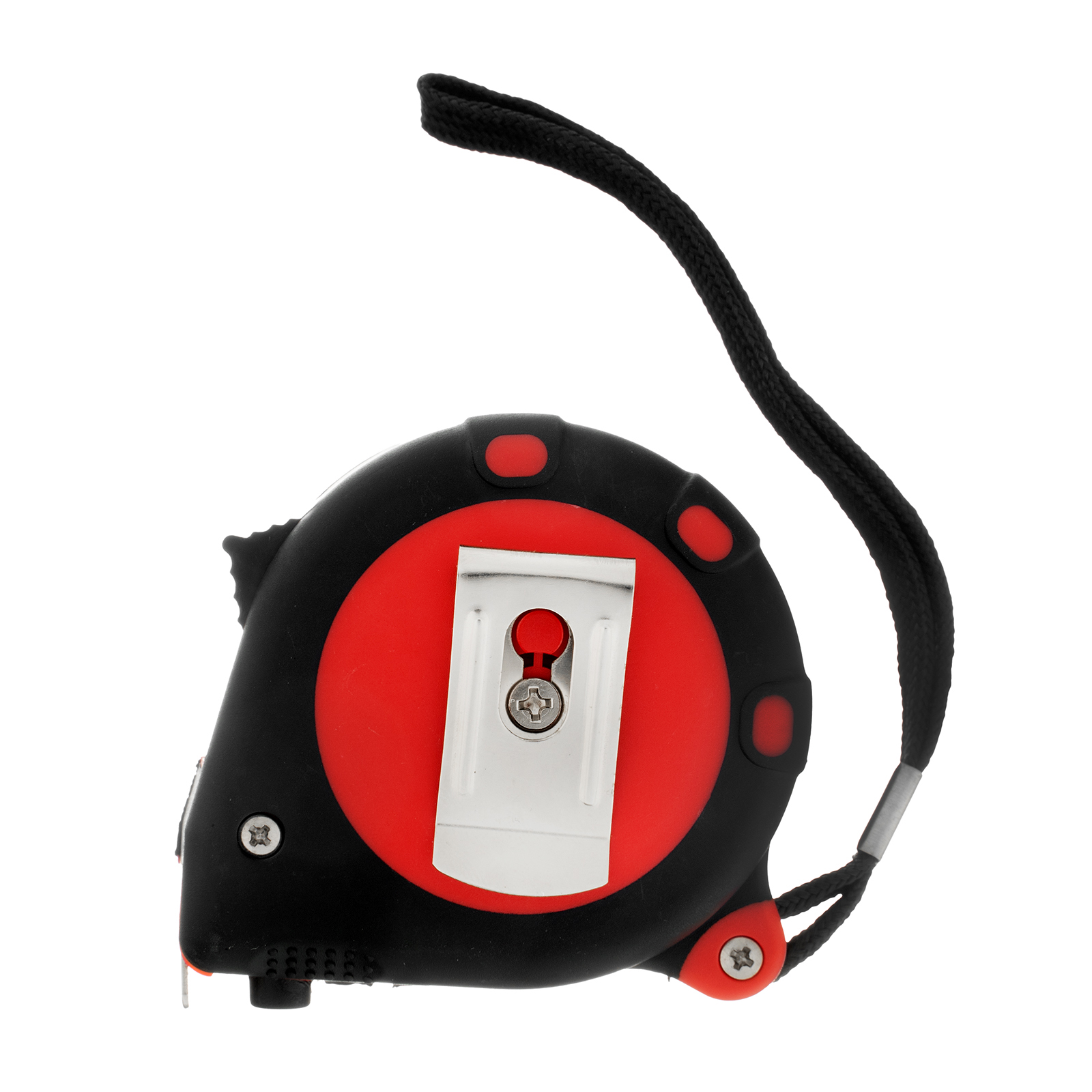 - Дополнительные возможности — нейлоновый ремешок позволяет подвесить рулетку на запястье, при помощи металлического зажима можно закрепить рулетку на поясе.