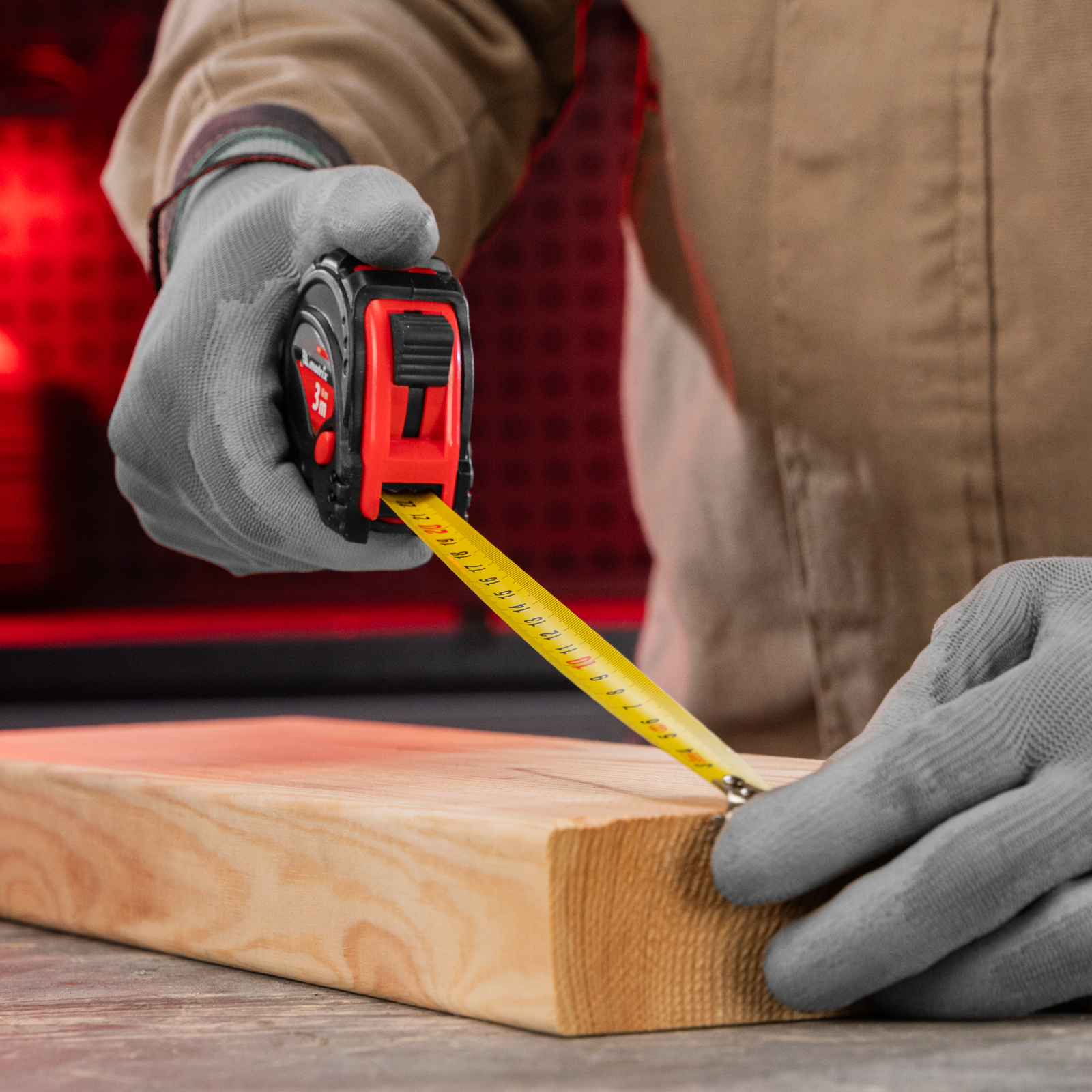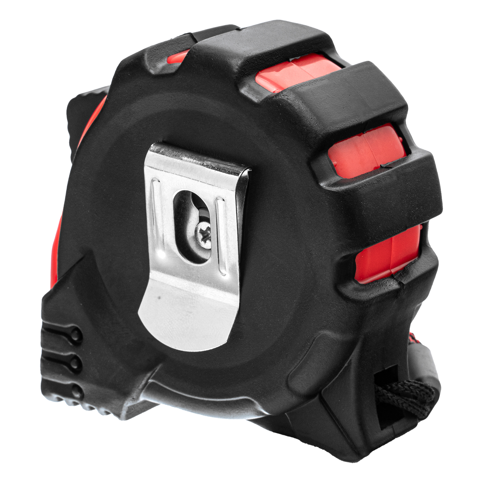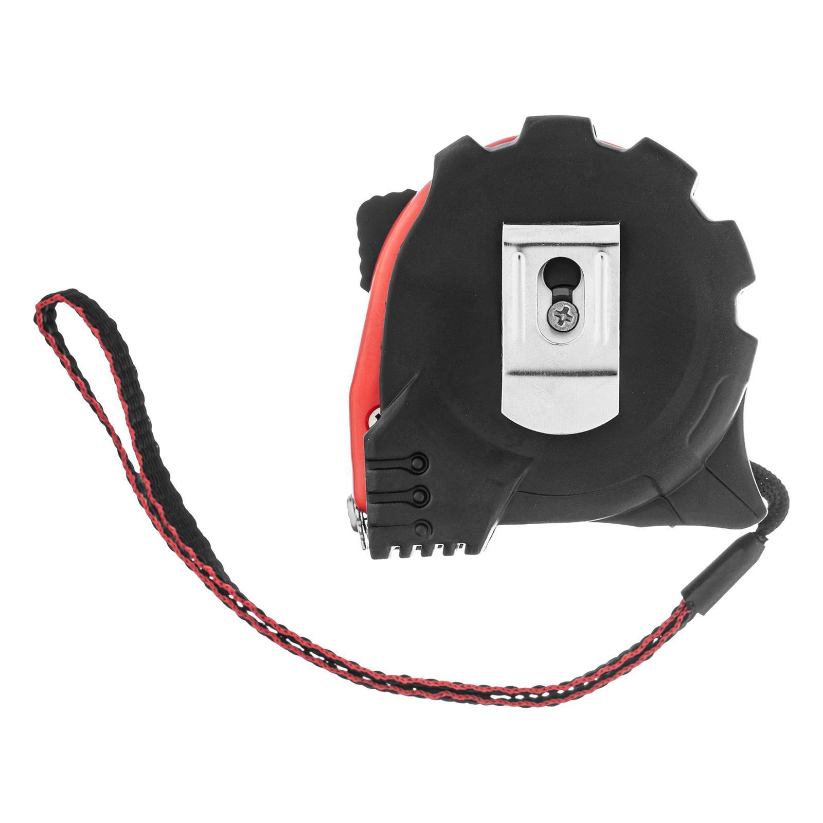 - Дополнительные возможности — шнурок для крепления на запястье уменьшает риск падения рулетки, на боковой поверхности имеется зажим для фиксации рулетки на поясном ремне.