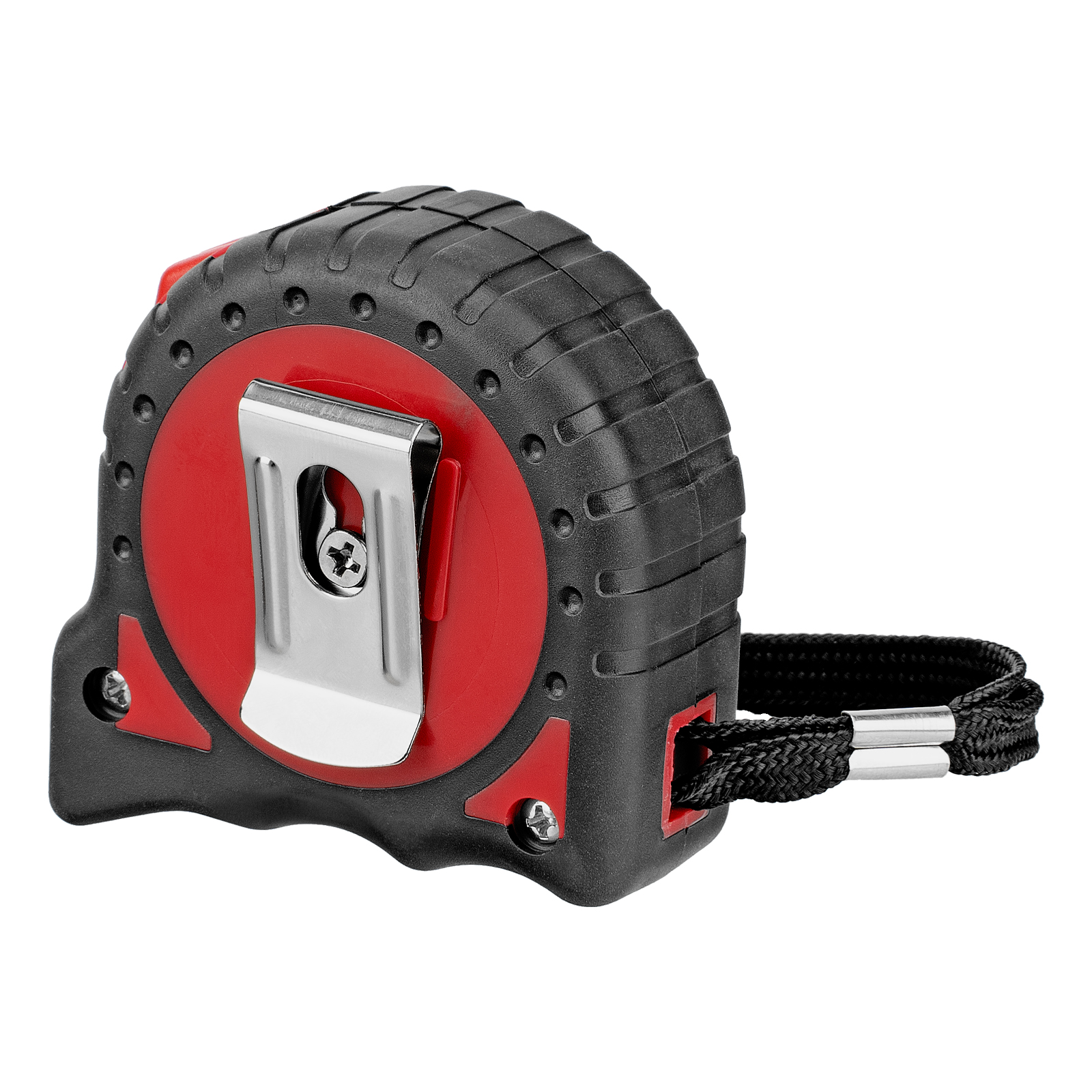 - Комфортная транспортировка — нейлоновый ремешок позволяет подвешивать рулетку на запястье, при помощи металлической клипсы-зажима ее можно зафиксировать на поясе.
