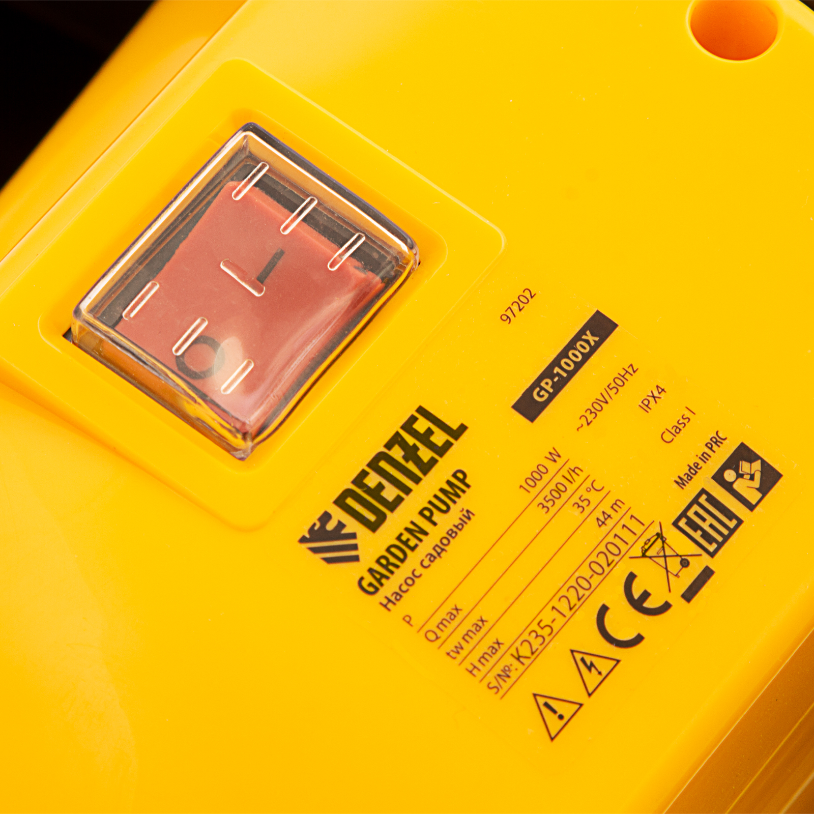 Садовый поверхностный насос Denzel GP1000X 97202 с корпусом из «нержавейки», мощностью 1000 Вт и производительностью 3500 л/ч, позволяет перекачивать большие объемы чистой воды из резервуаров и колодцев глубиной до 8 м, а высоты подъема до 44 м хватает для питания систем полива и водоснабжения загородного дома. Благодаря высокой производительности насос обеспечивает подачу воды сразу в несколько точек разбора.