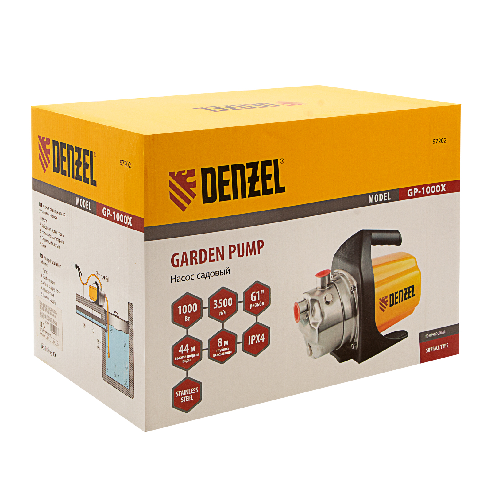 Садовый поверхностный насос GP 1000Х, 1000 Вт, 3500 л/ч, подъем 44 м, нержавейка Denzel в Екатеринбурге