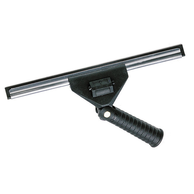 Стяжка для мытья окон с поворотным механизмом и с пластиковым держателем сгона, 35 см. При работе со сгоном рекомендуется производить уборку, проводя по стеклу S-образные движения, перемещаясь сверху-вниз. При работе с большими стеклянными проемами, витринами магазинов стяжка устанавливается в телескопическкую рукоятку.