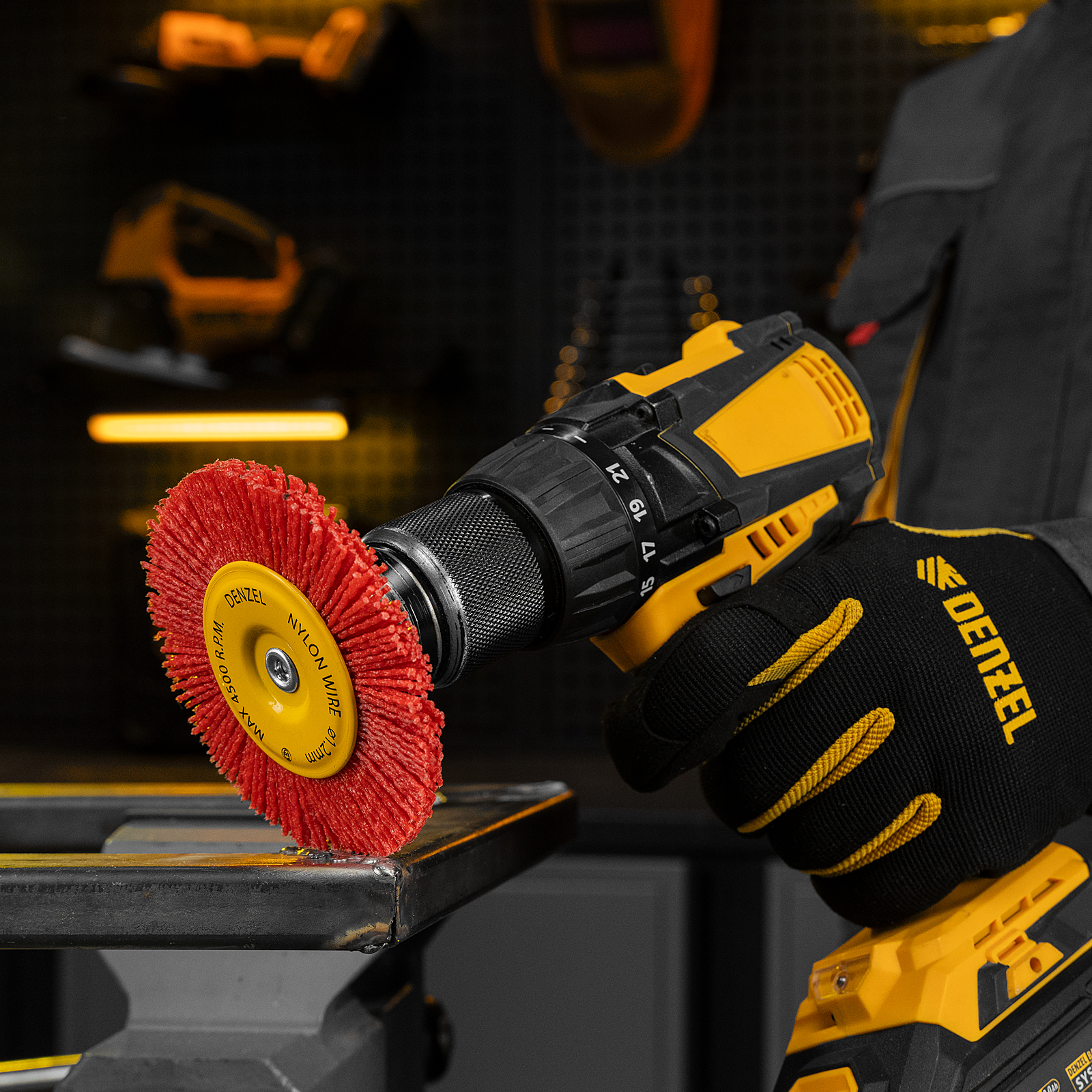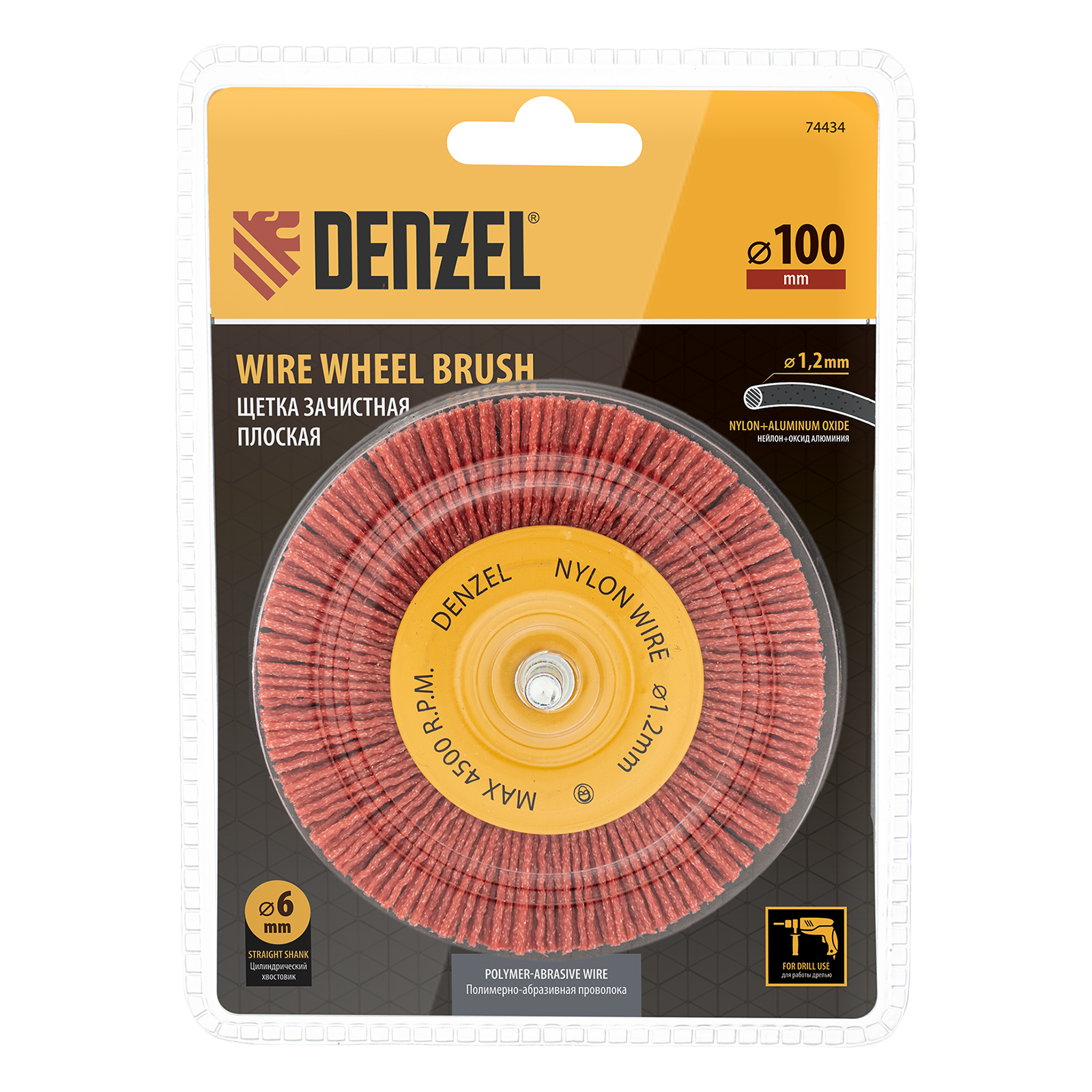 Щетка для дрели, 100 мм, Плоская, со шпилькой, нейлоновая щетина Denzel в Екатеринбурге
