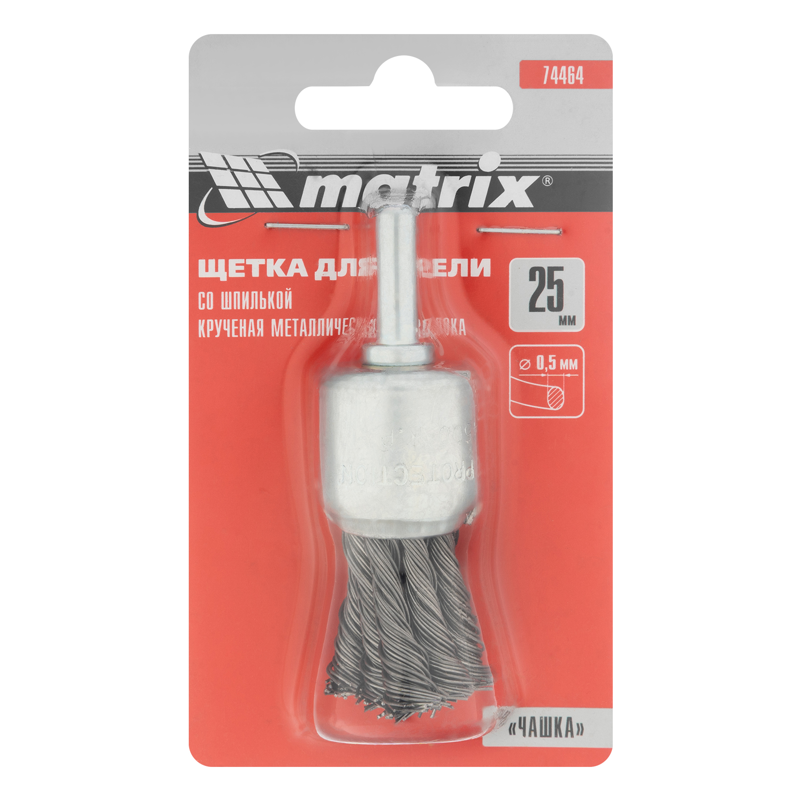 Щетка для дрели, 25 мм, "чашка" со шпилькой, крученая металлическая проволока Matrix в Екатеринбурге