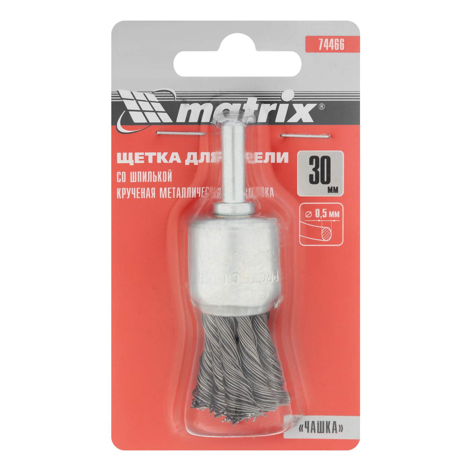 Щетка для дрели, 30 мм, "чашка" со шпилькой, крученая металлическая проволока Matrix в Екатеринбурге
