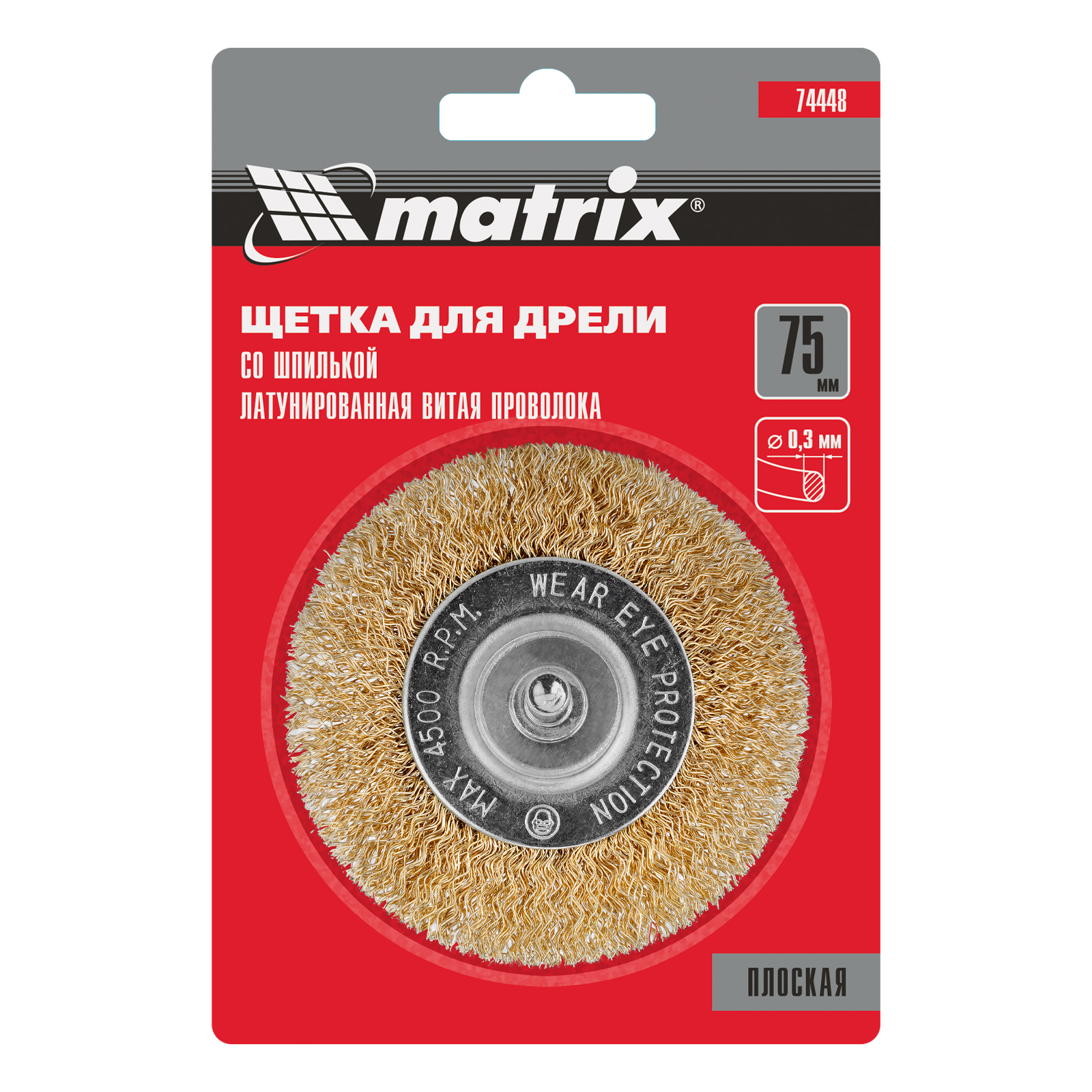 Щетка для дрели, 75 мм, плоская со шпилькой, латунированная витая проволока Matrix в Екатеринбурге