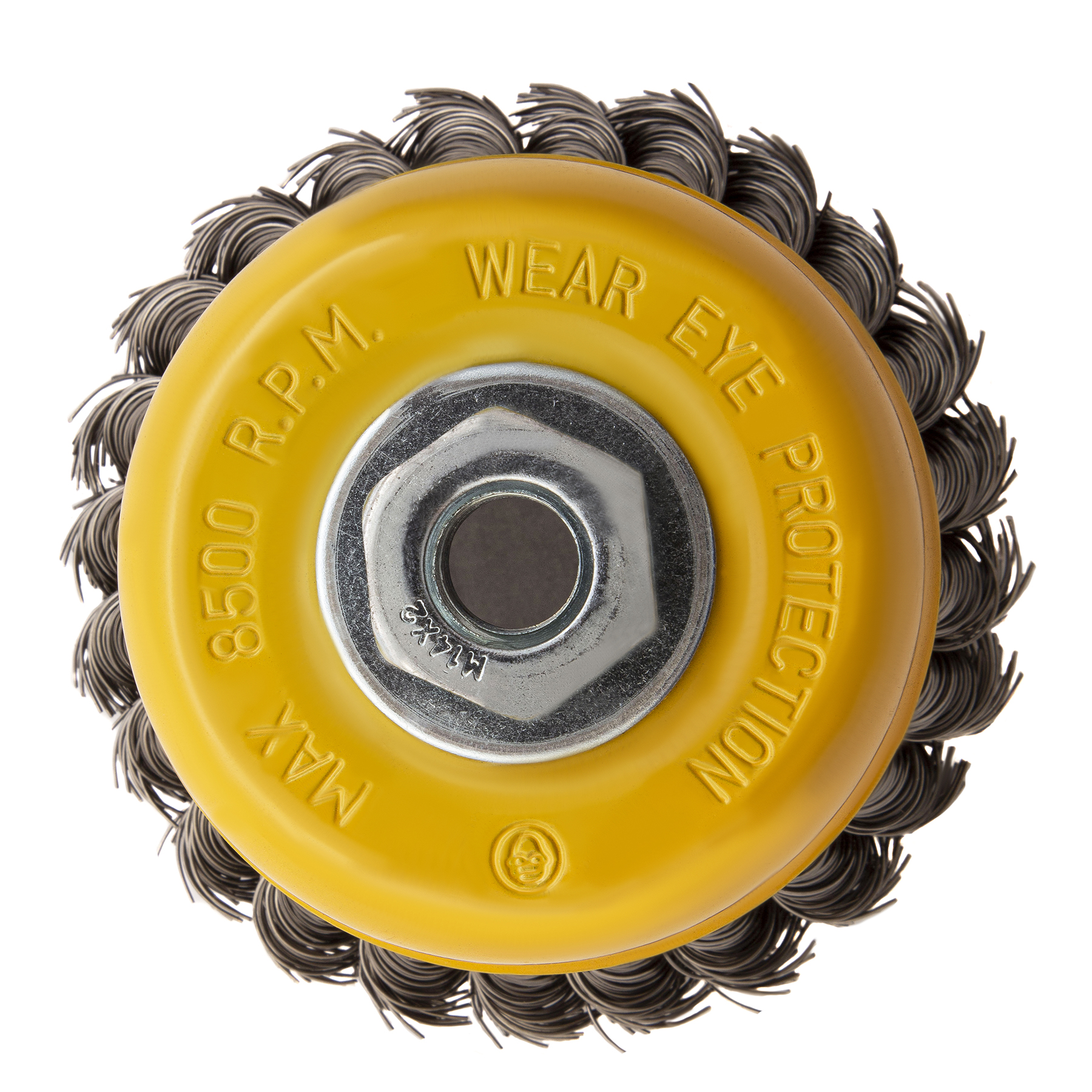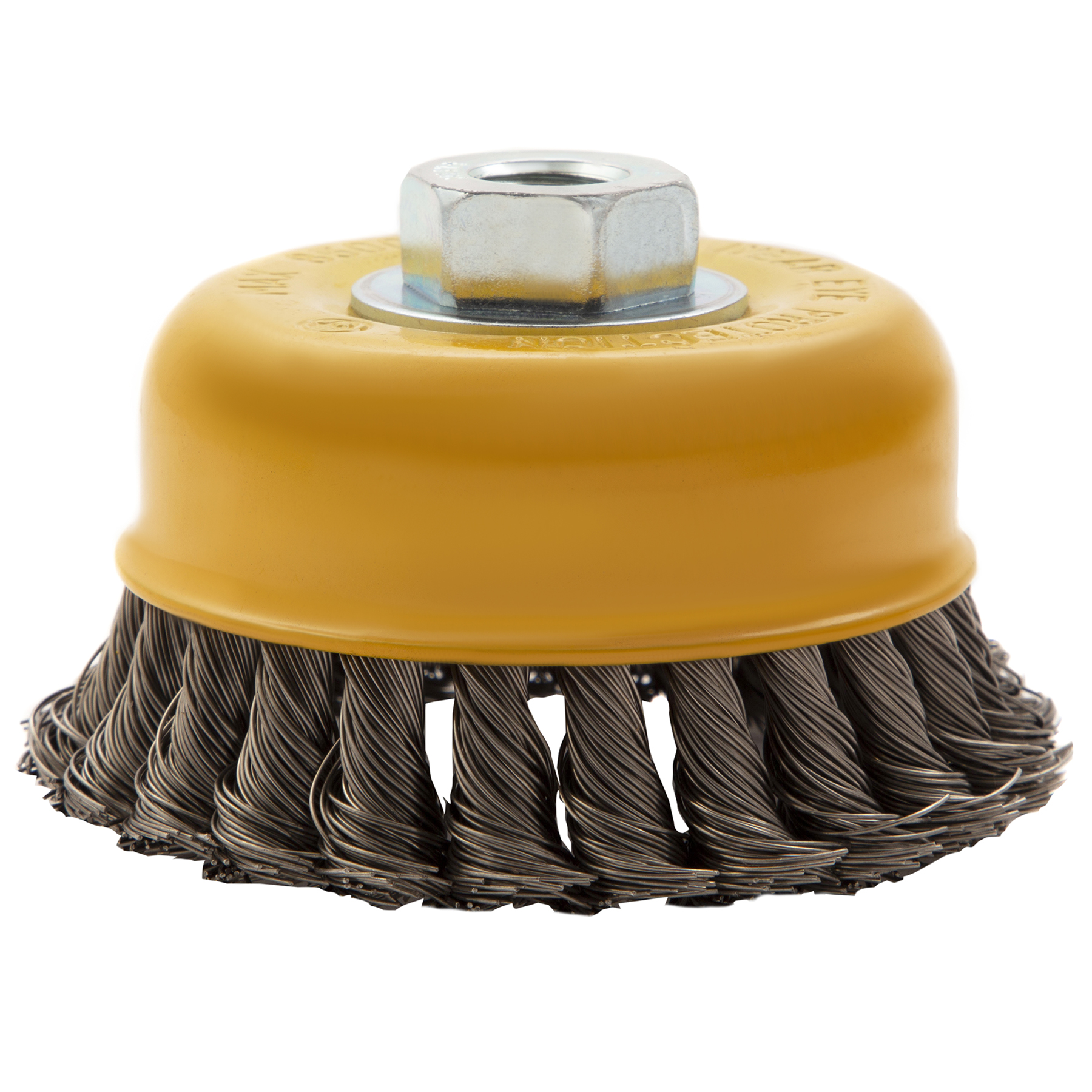 Щетка для УШМ «Чашка» Denzel 746283, М14, диаметром 100 мм, с щетиной из крученой нержавеющей проволоки диаметром 0,5 мм, предназначена для грубой очистки твердых поверхностей от ржавчины, лакокрасочных покрытий, загрязнений, удаления заусенцев, а также для зачистки сварных швов. Снимает толстый слой материала, идеально подходит для обработки изделий из нержавеющей стали. Щетка имеет форму чашки и позволяет очищать участки большой площади. Оснастку устанавливают на вал углошлифовальной машины. Рекомендуемая максимальная скорость вращения составляет 8500 об/мин. Во время работы следует использовать средства индивидуальной защиты — очки, респиратор, наушники, перчатки, а также специальную одежду и обувь. Щетка применяется в строительстве, на производстве, а также в быту.