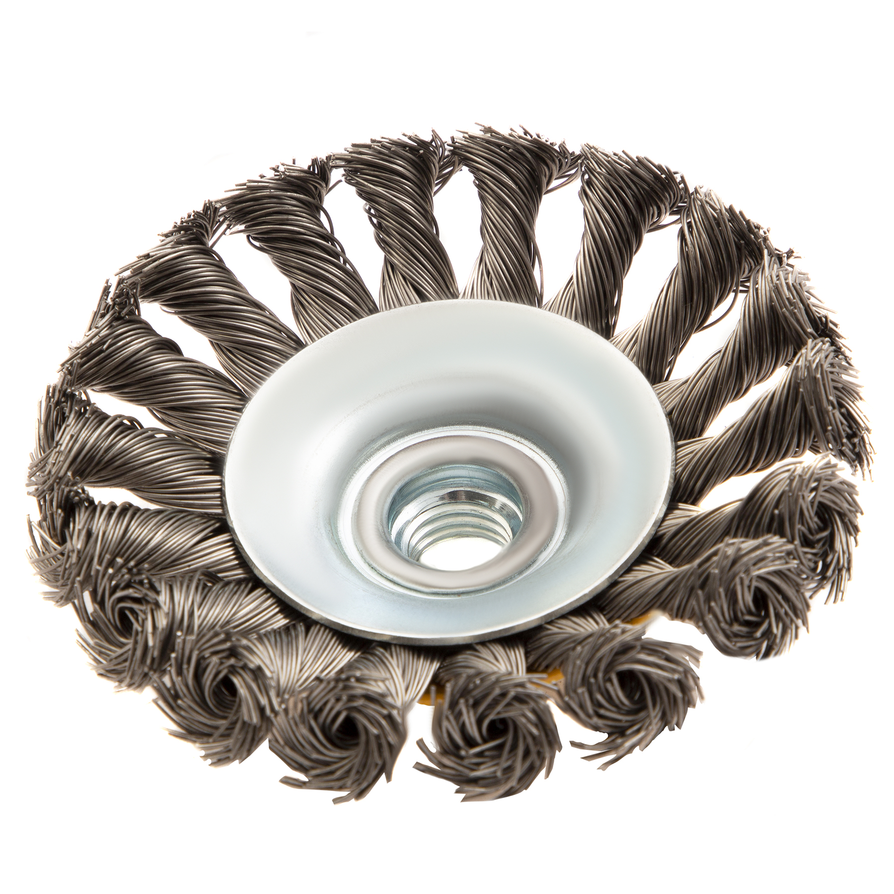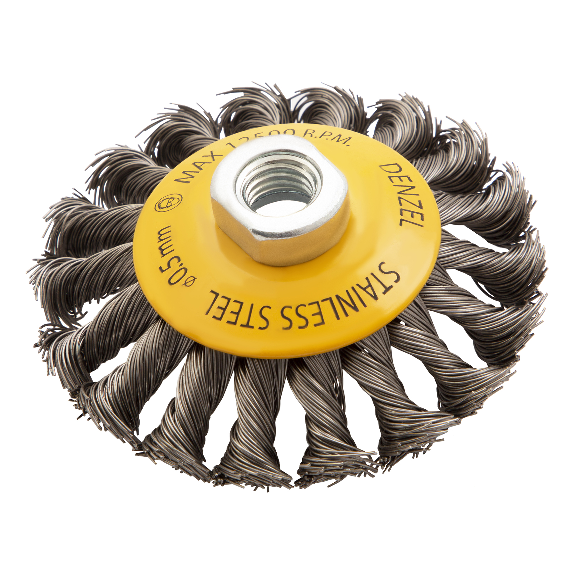 Щетка для УШМ, 100 мм, "Тарелка", крученая нержавеющая проволока 0.5 мм, М14 Denzel в Екатеринбурге
